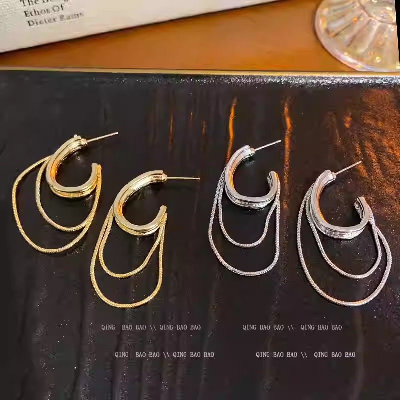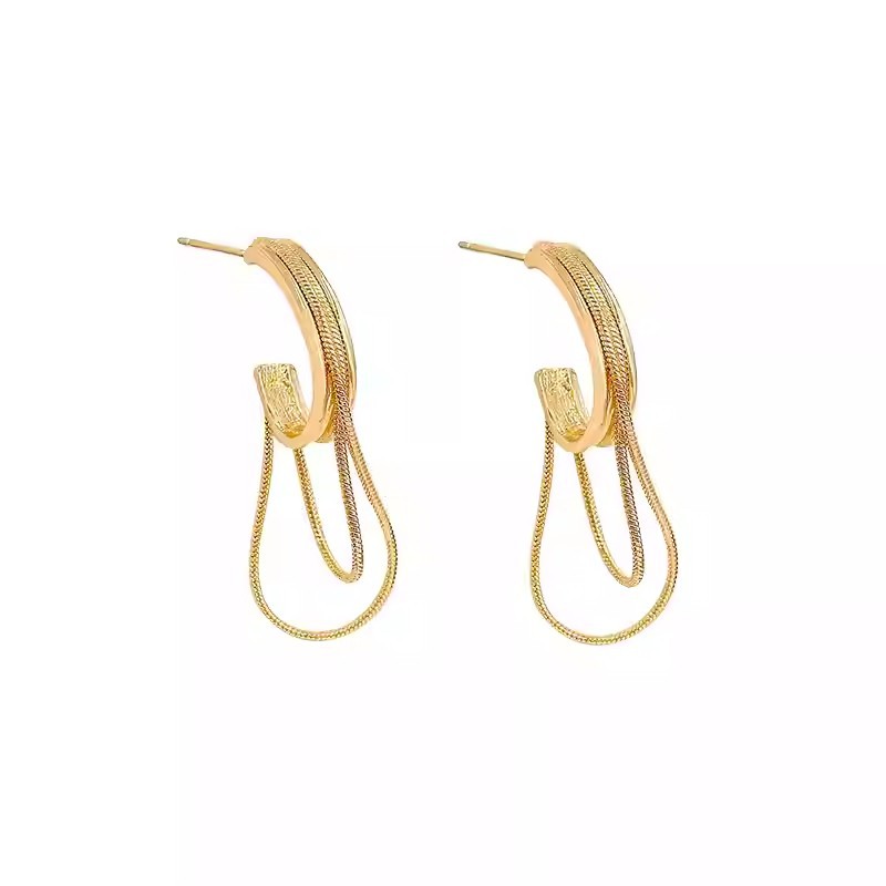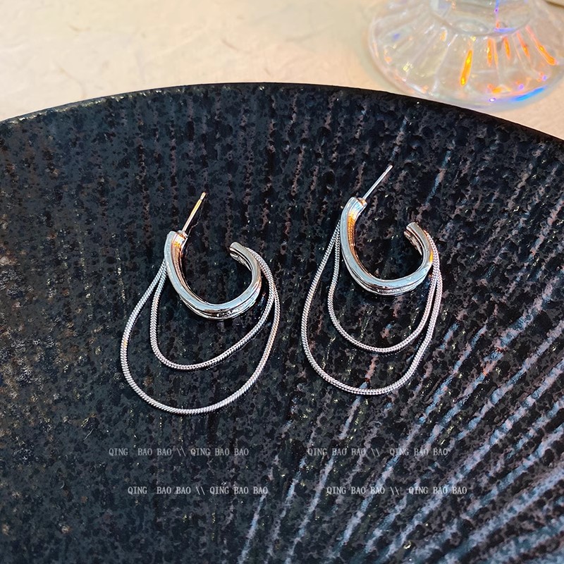 轻奢小众时尚高级感流苏耳环女百搭气质简约金属感耳钉耳饰品批发