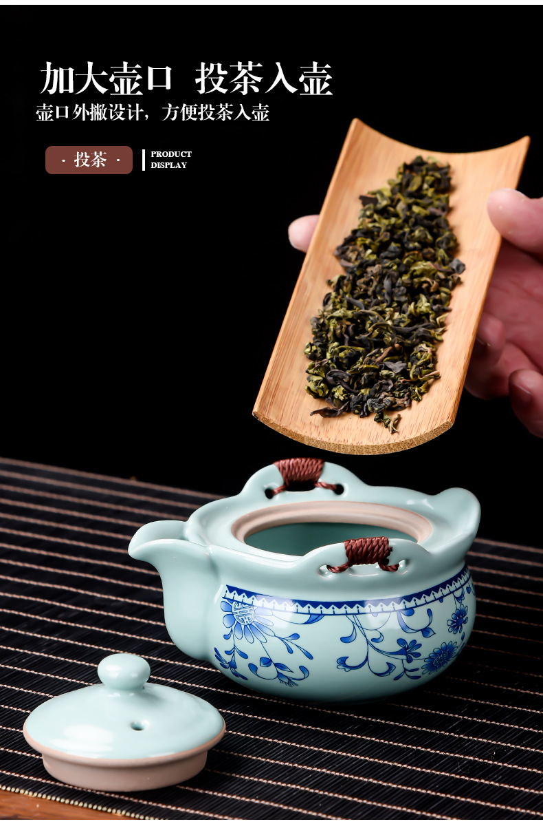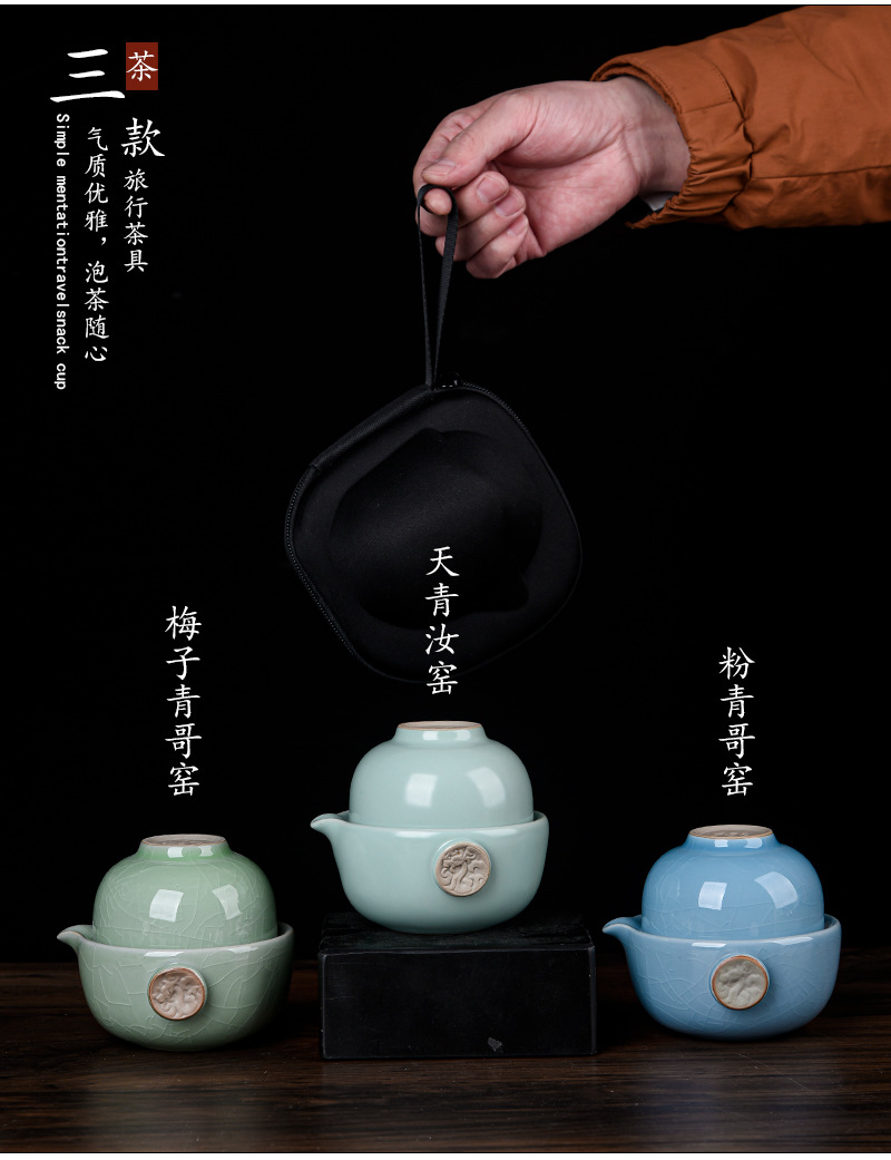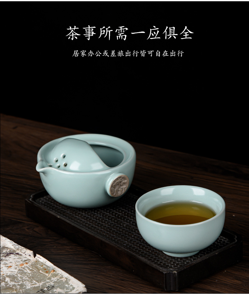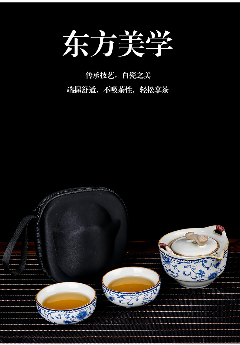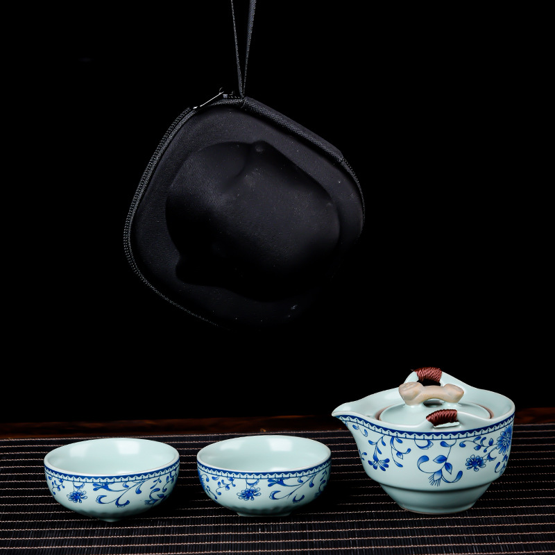 汝窑青花快客杯一壶二杯随身旅行茶具套装户外泡茶壶茶杯商务礼品