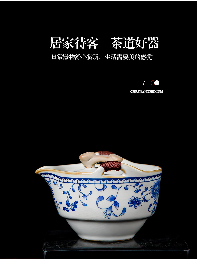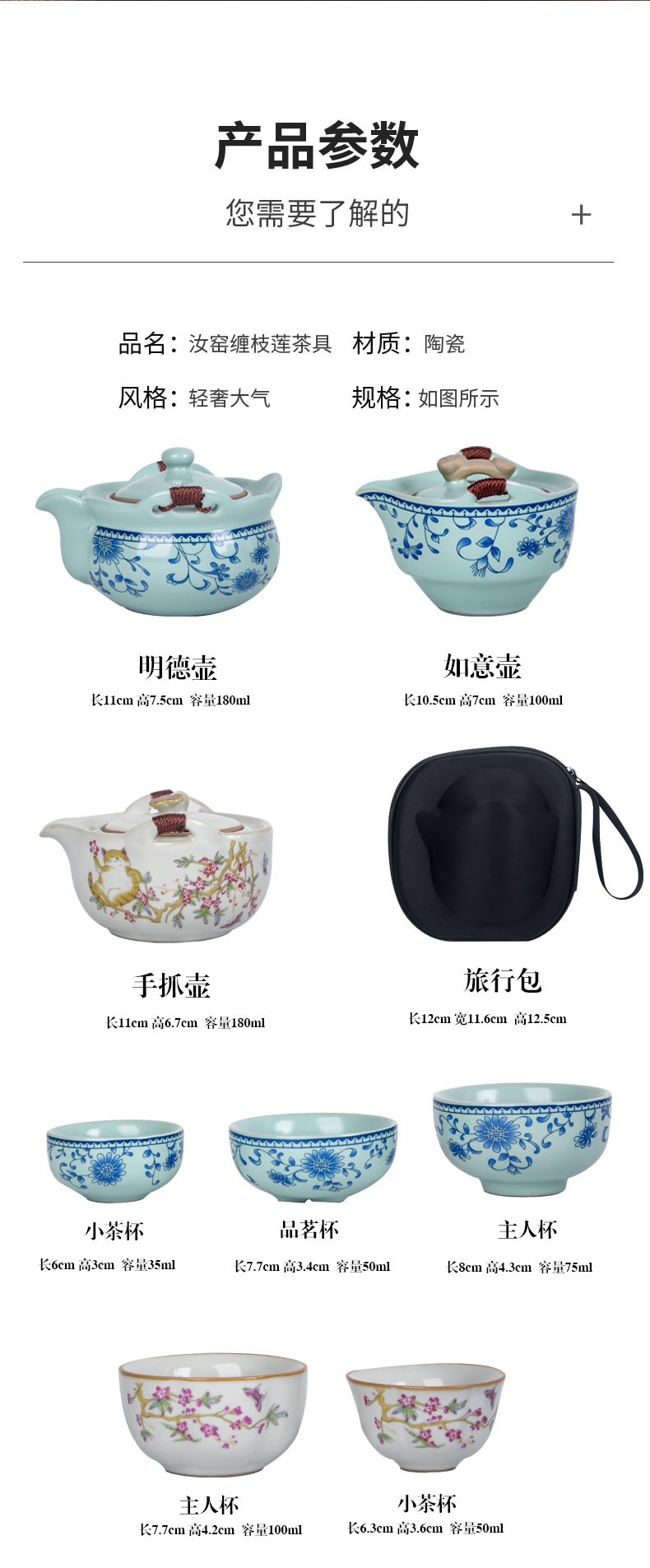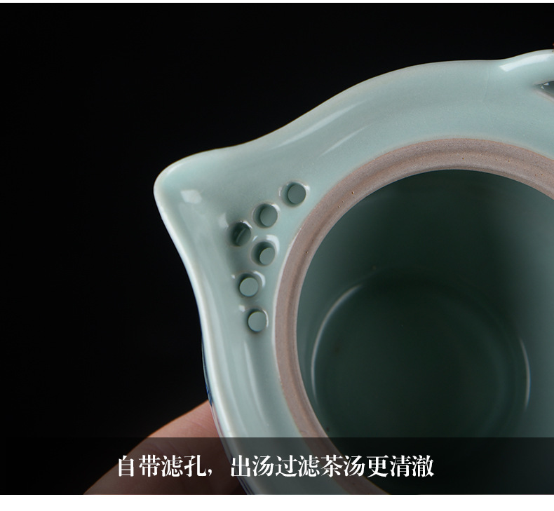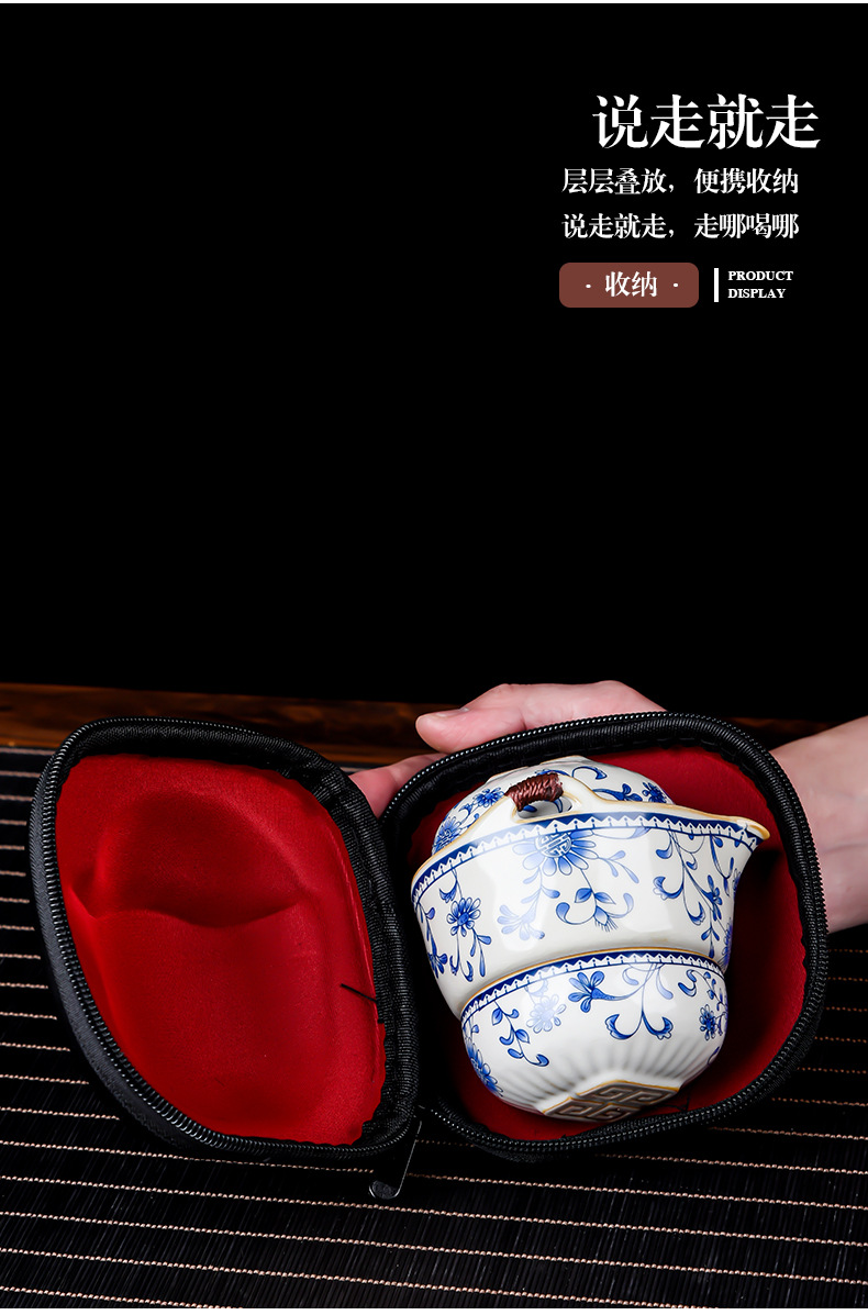 汝窑青花快客杯一壶二杯随身旅行茶具套装户外泡茶壶茶杯商务礼品