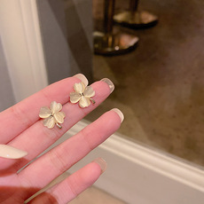 S925银针巴洛克风珍珠耳环女不规则几何形亮片超仙气质耳钉耳饰品