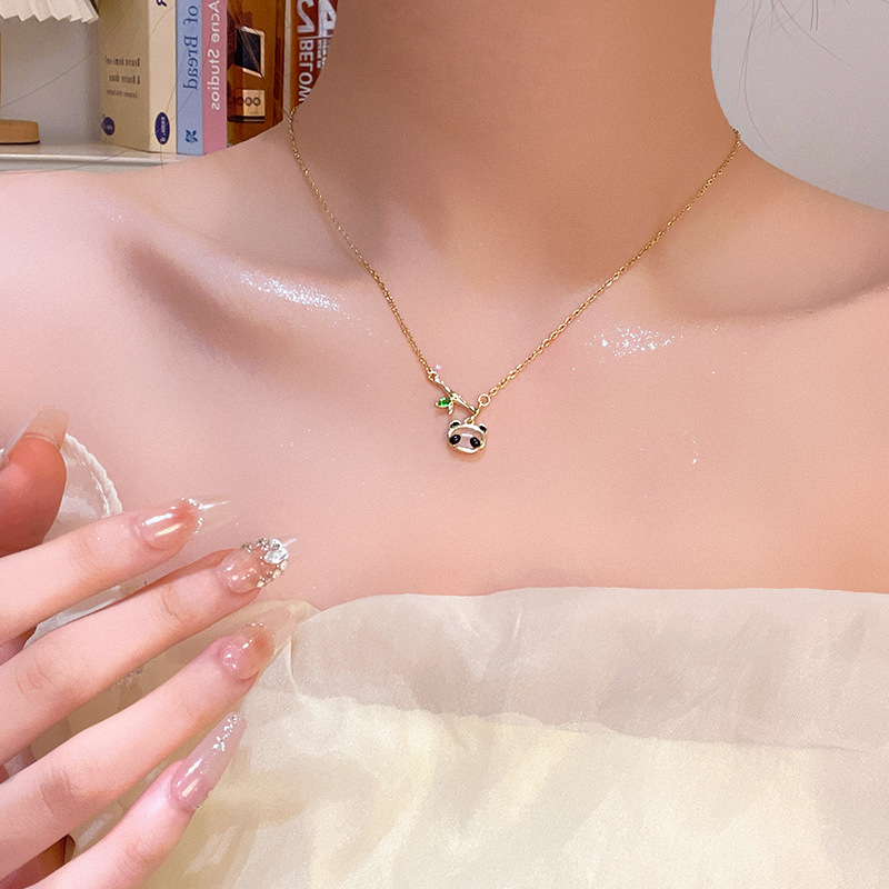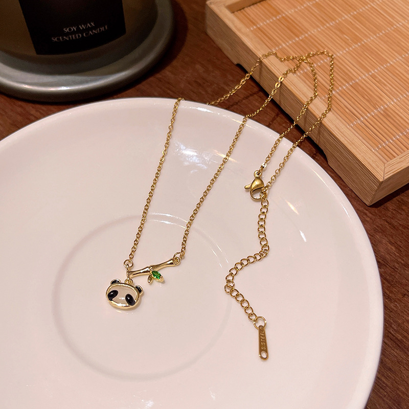 可爱小熊猫竹子吊坠项链新中式国潮钛钢锁骨链百搭气质高级感颈链