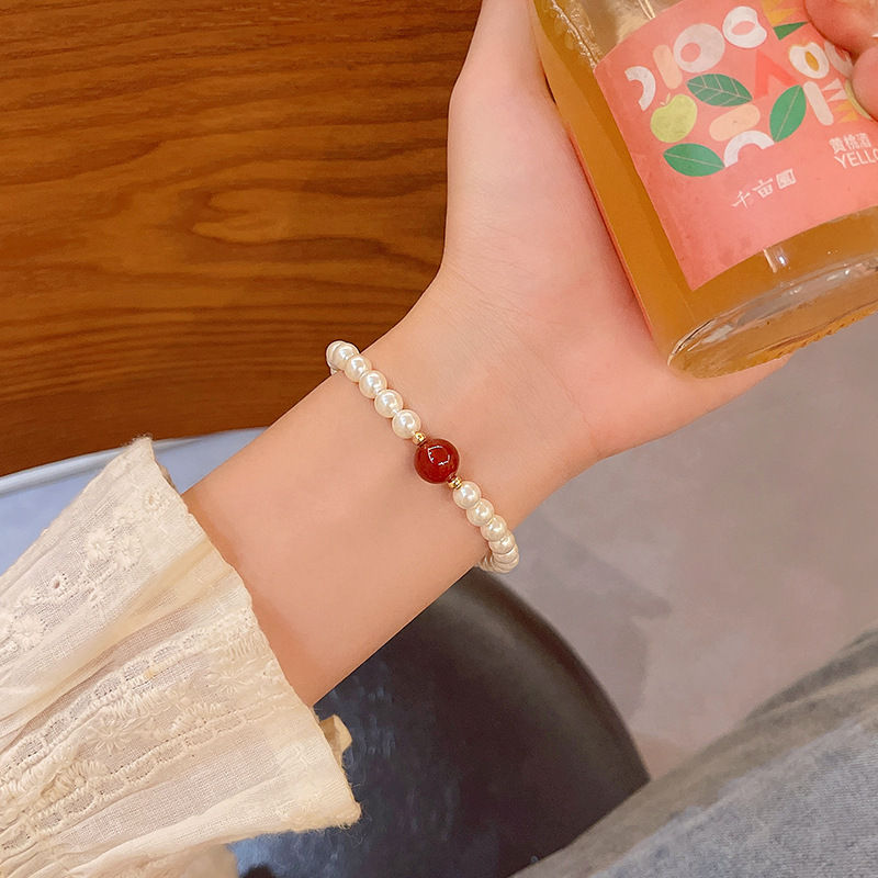 甜美可爱多巴胺彩色串珠手串小众高级感珍珠手链女气质水晶手饰品