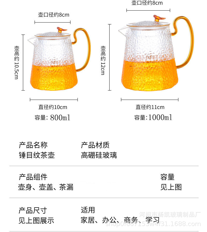 锤纹高硼硅玻璃锤纹壶 带过滤泡茶壶 家用可电陶炉普洱煮茶花茶壶