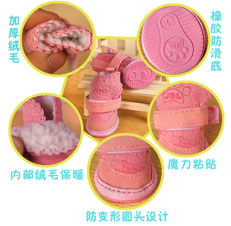 宠物鞋子加绒羊羔绒雪地靴狗狗猫咪保暖鞋子泰迪博美宠物用品批发