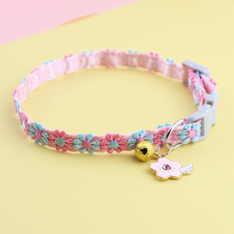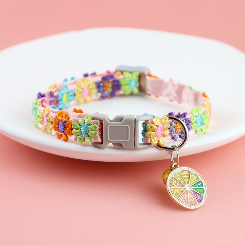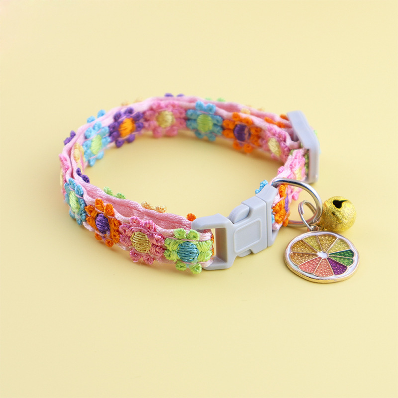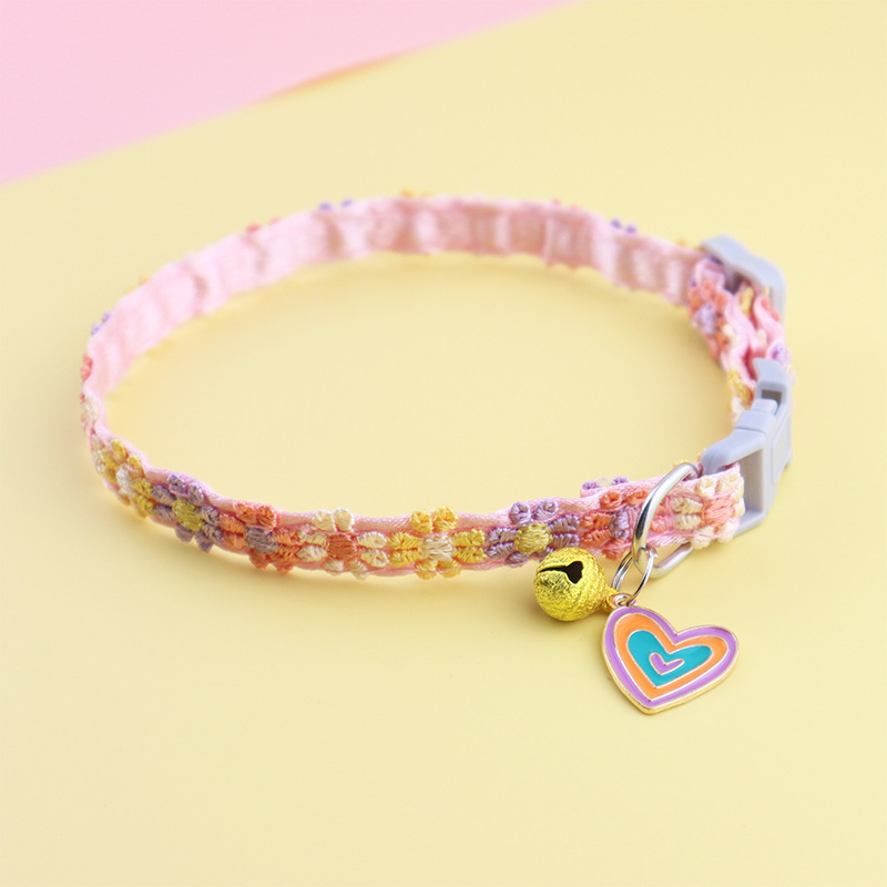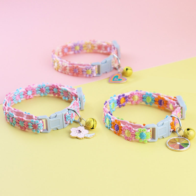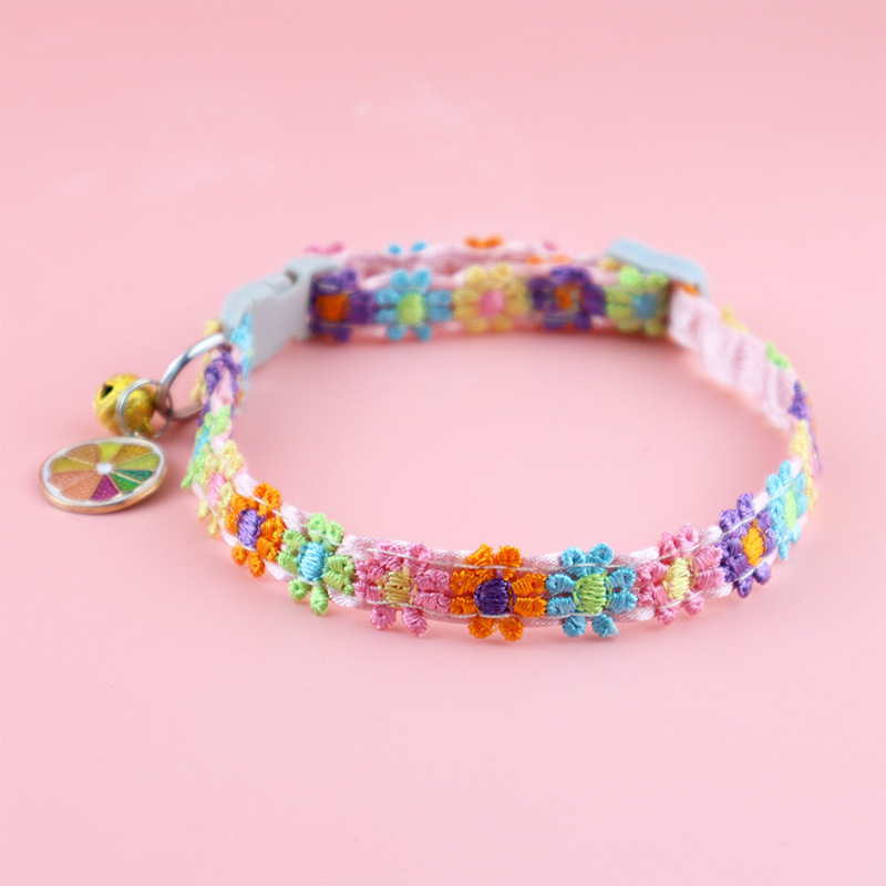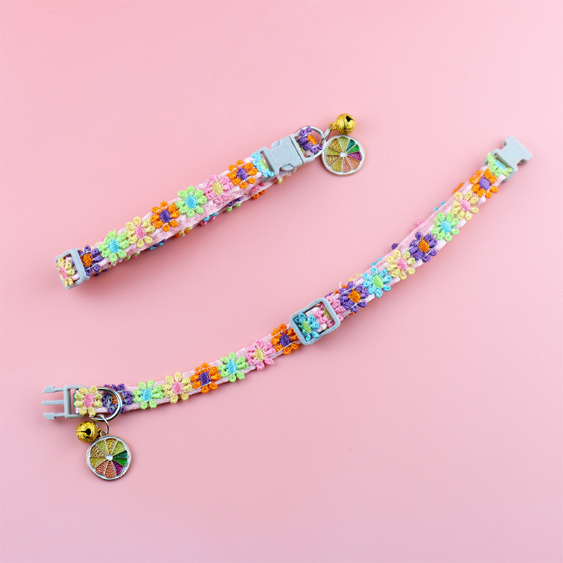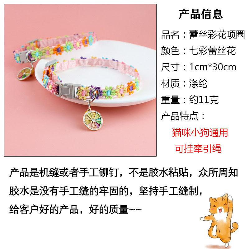 七彩蕾丝小花猫咪项圈多巴胺项圈铃铛猫项链狗狗脖圈猫咪饰品批发