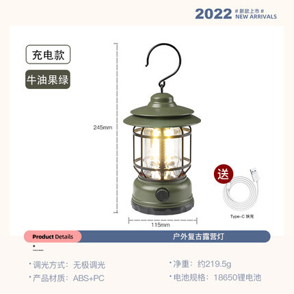 抖音爆款户外露营灯野营灯室外专用帐篷灯cob充电手提灯复古马灯