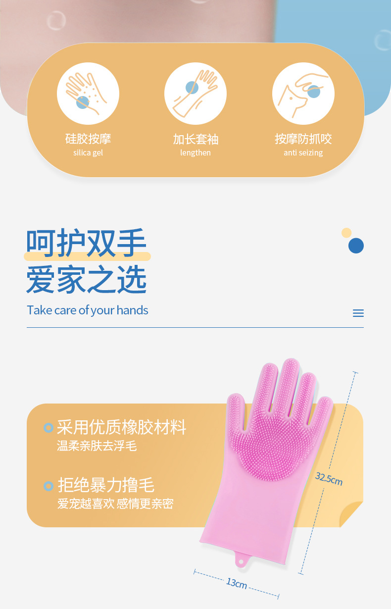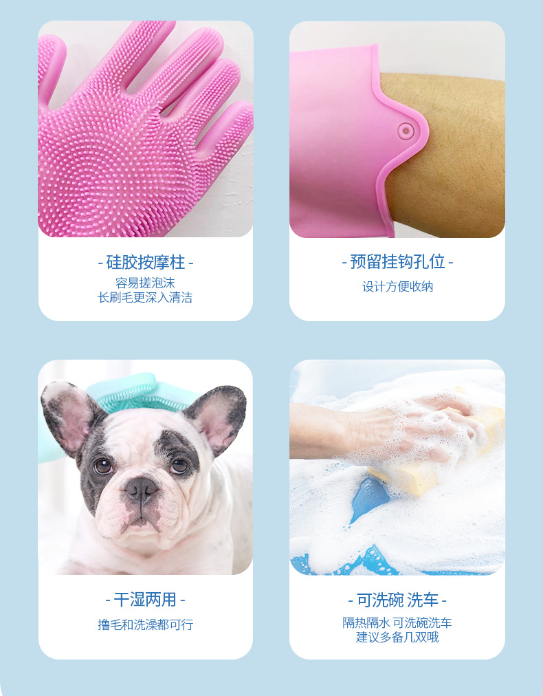 宠物洗澡刷手套硅胶撸猫手套防抓挠狗狗洗澡刷去浮毛宠物用品批发