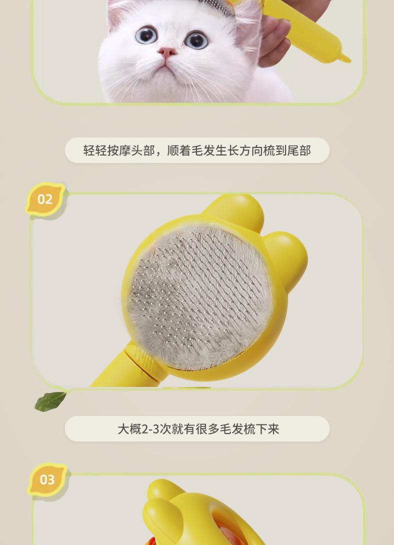 软萌兔耳猫咪自洁梳宠物梳子开结去浮毛死毛狗狗针梳宠物用品批发