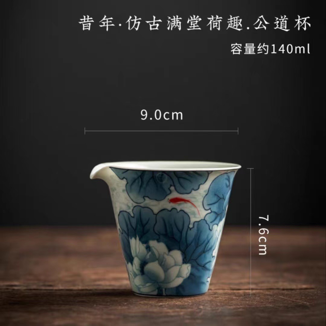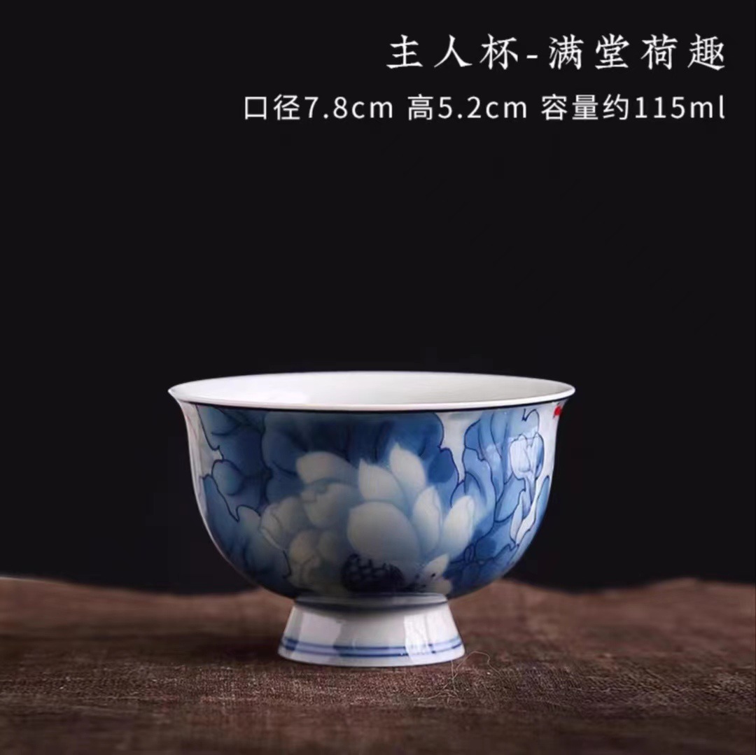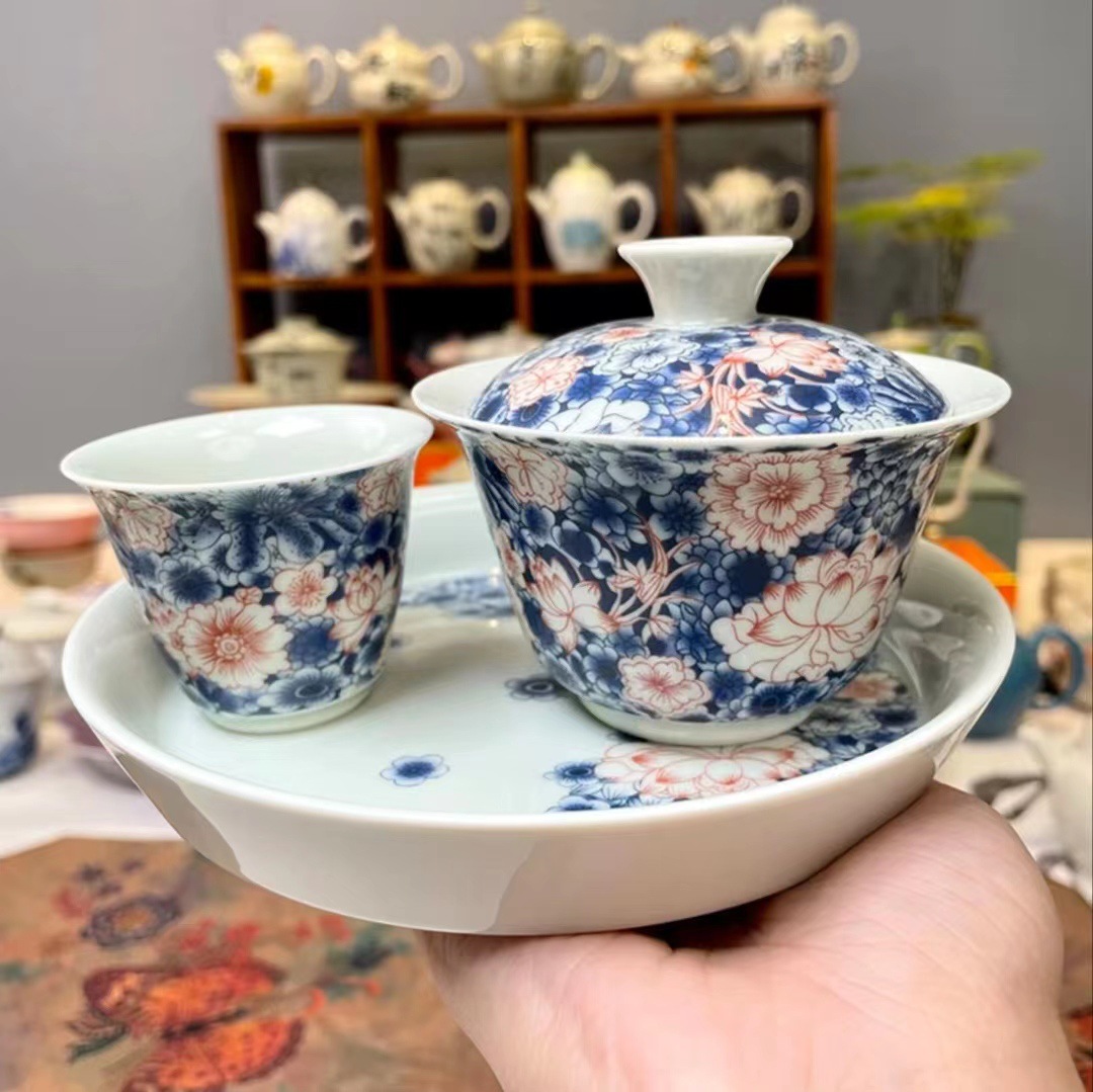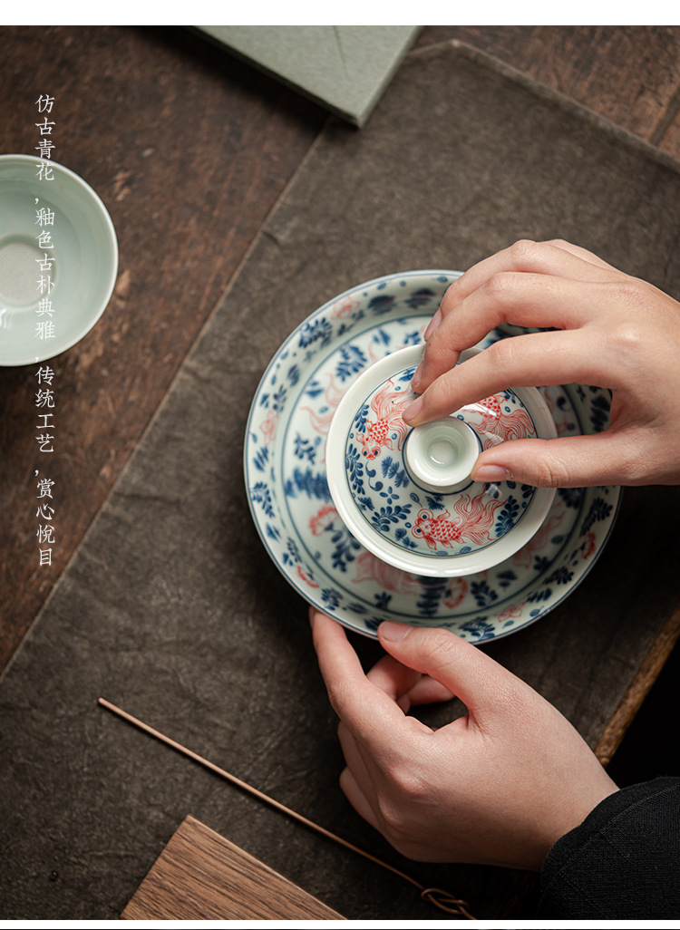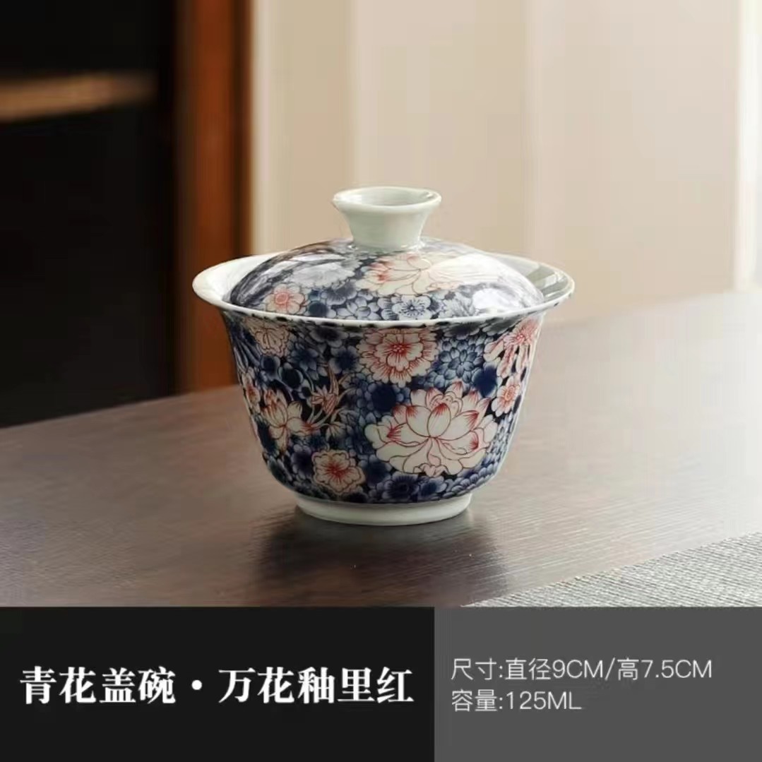 陶瓷三才盖碗茶杯青花盖碗釉下彩可悬停浮泡茶碗不烫手高档茶具