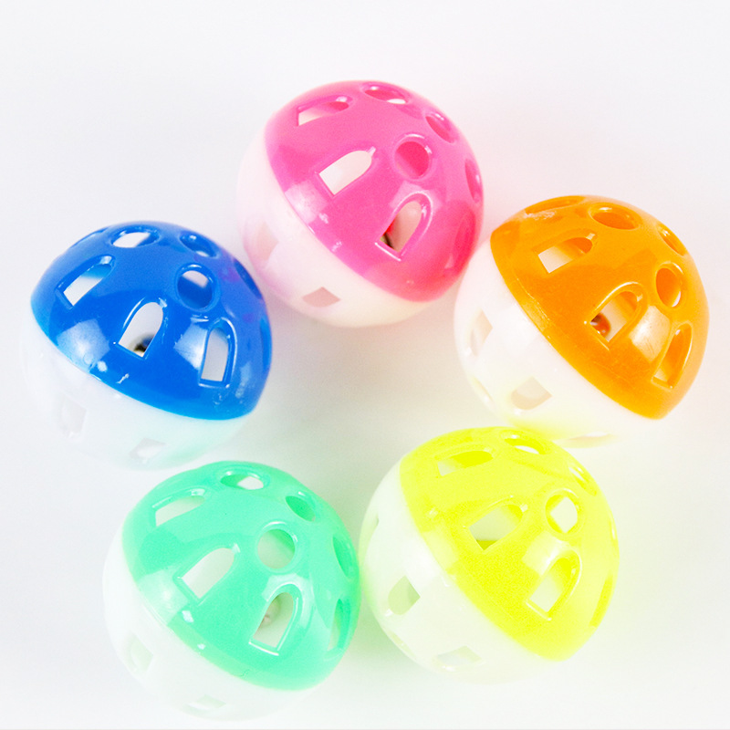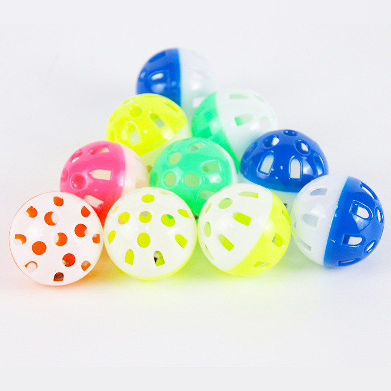 猫玩具双拼色镂空铃铛球逗猫玩具厂家现货自嗨互动发声猫咪玩具
