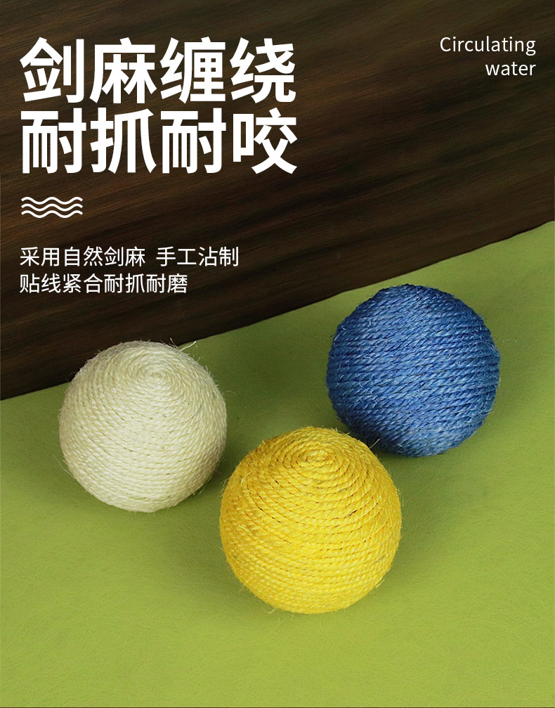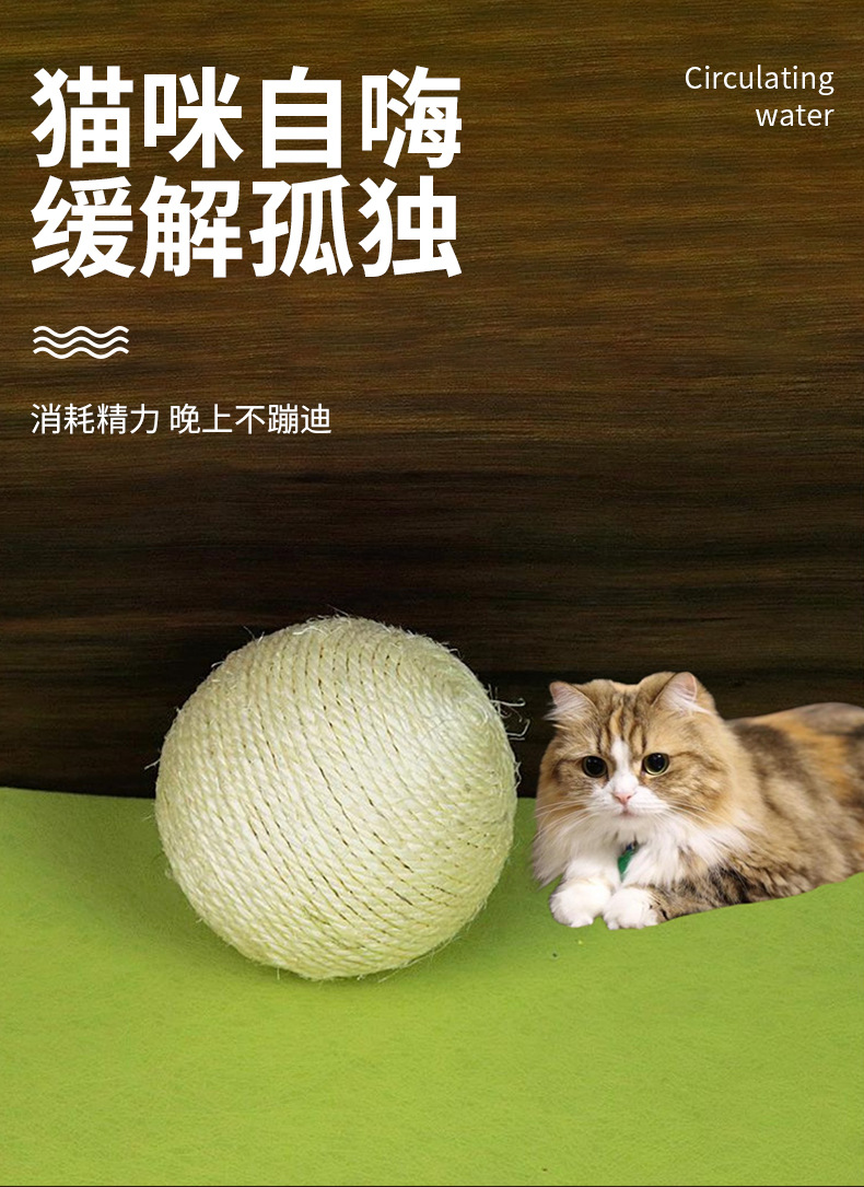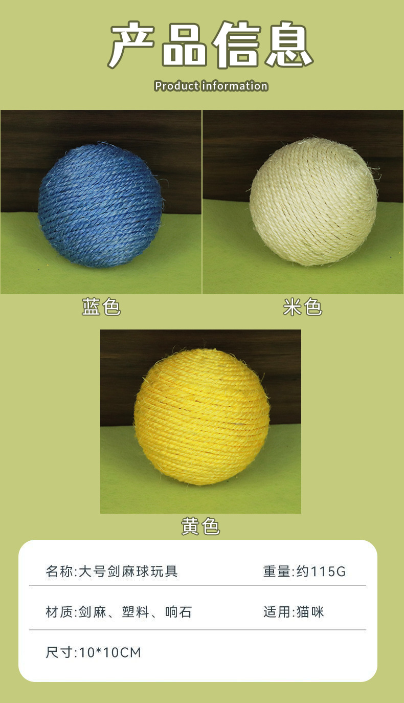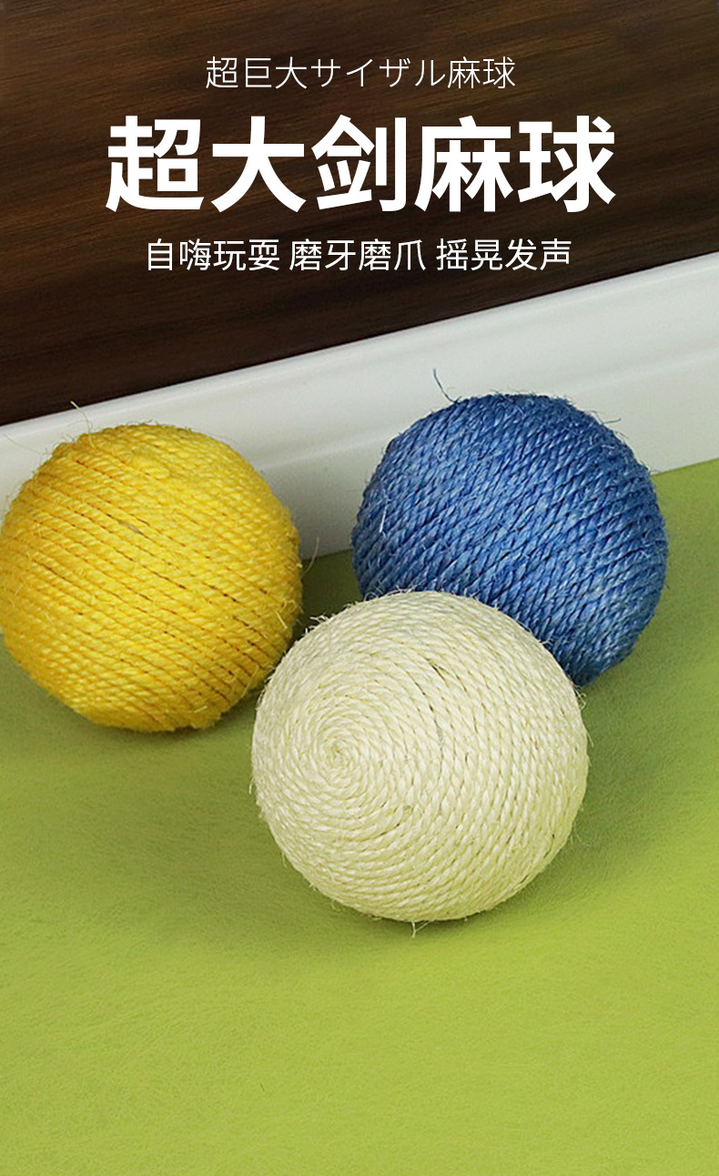 猫咪玩具自嗨解闷互动大号剑麻球逗猫玩具耐抓耐咬磨牙发声猫玩具