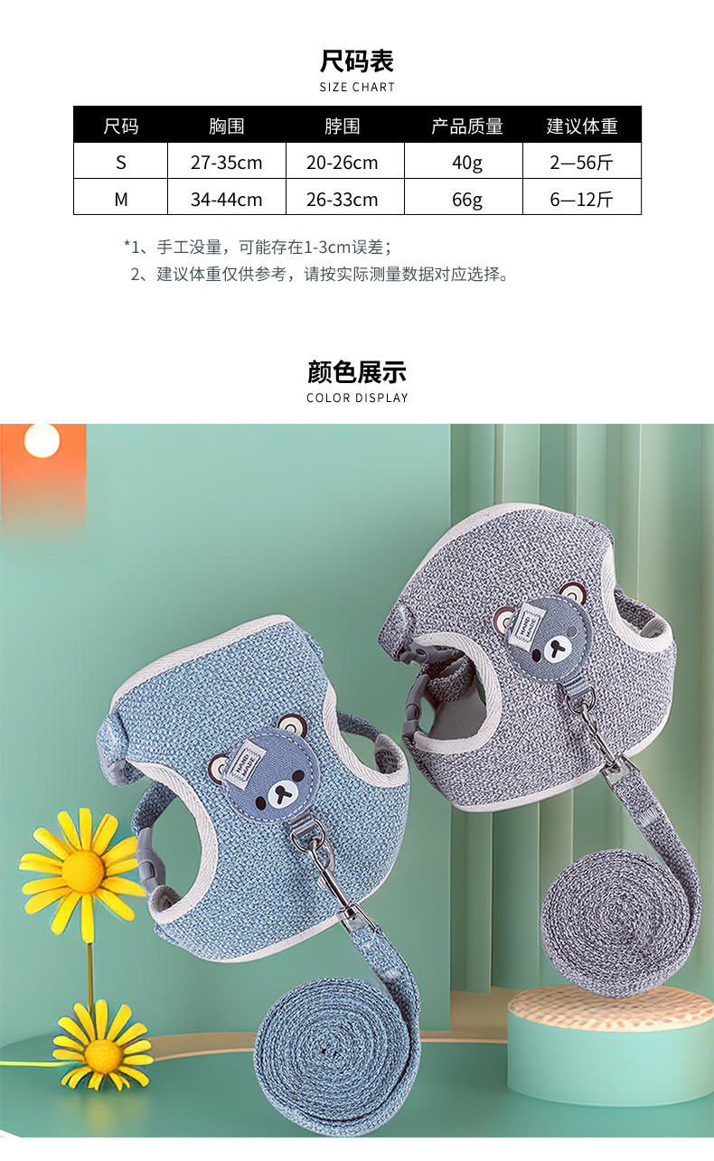 狗狗牵引绳可调节背带式牵狗绳小型宠物外出遛狗遛猫防挣脱狗绳