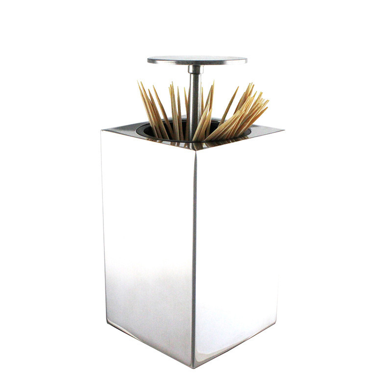 按压牙签筒跨境不锈钢简约高颜值酒店家居自动迷你牙签罐收纳容器