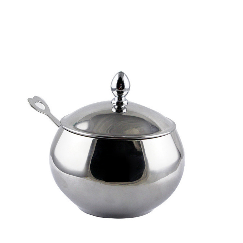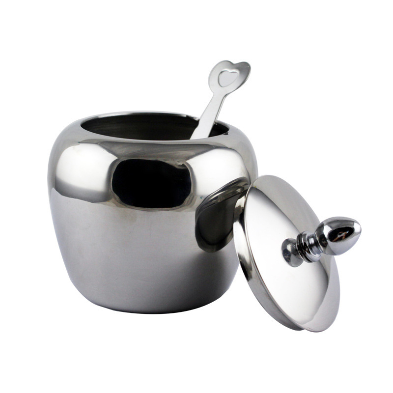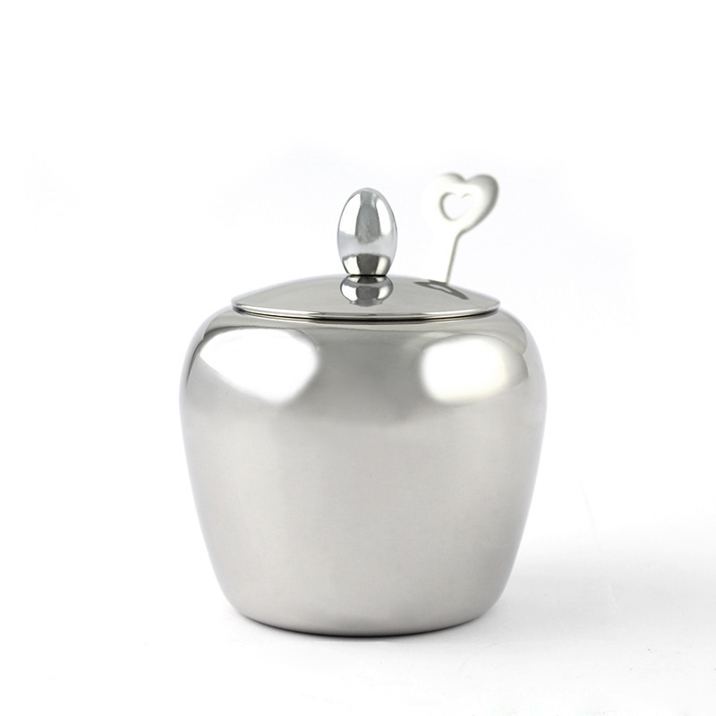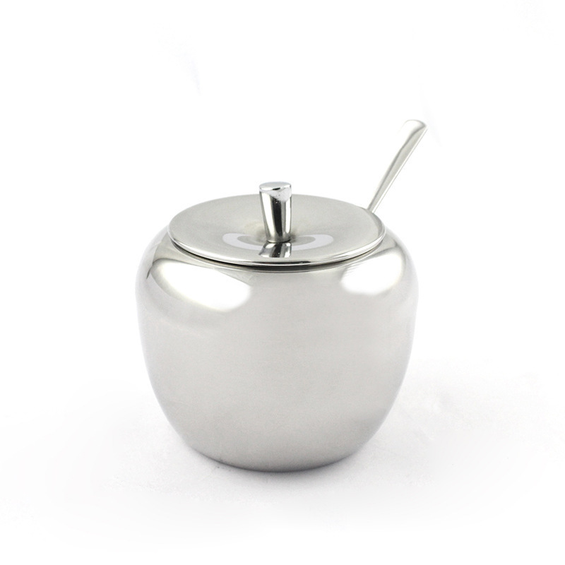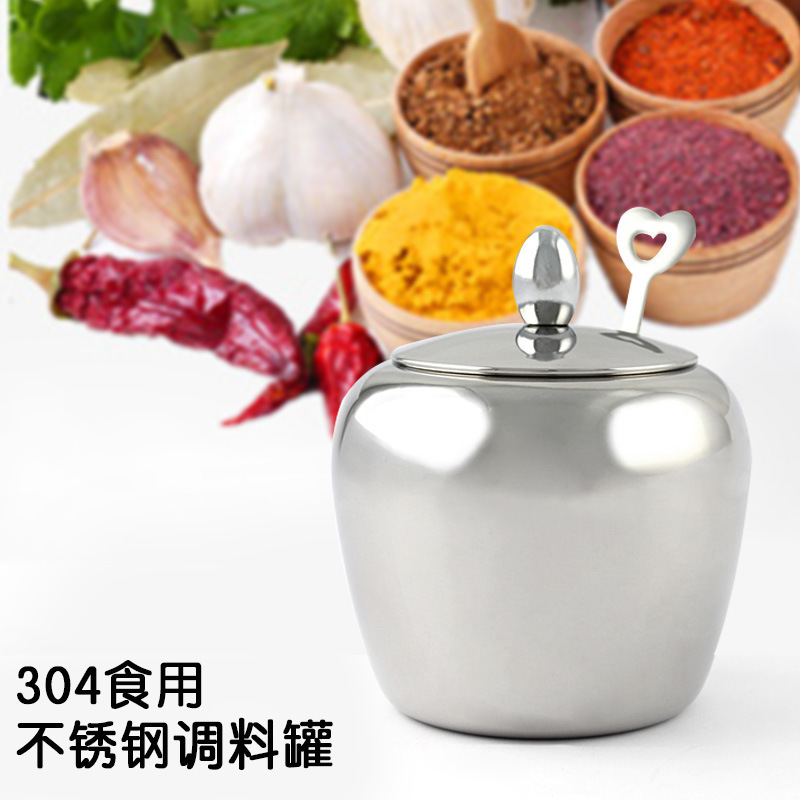 调味罐304不锈钢带勺苹果糖盅香料罐 厨房调料罐盐罐调味盒调料盒