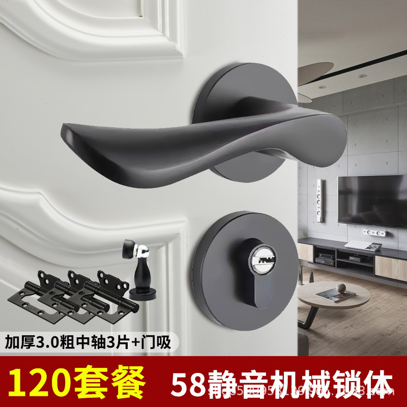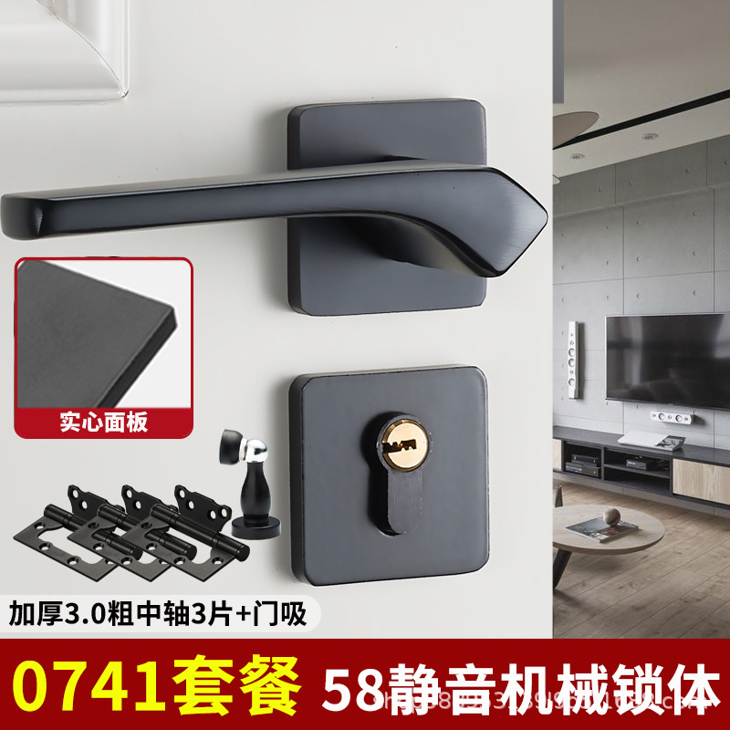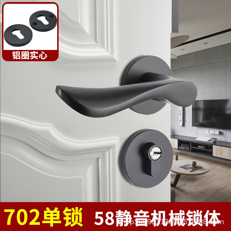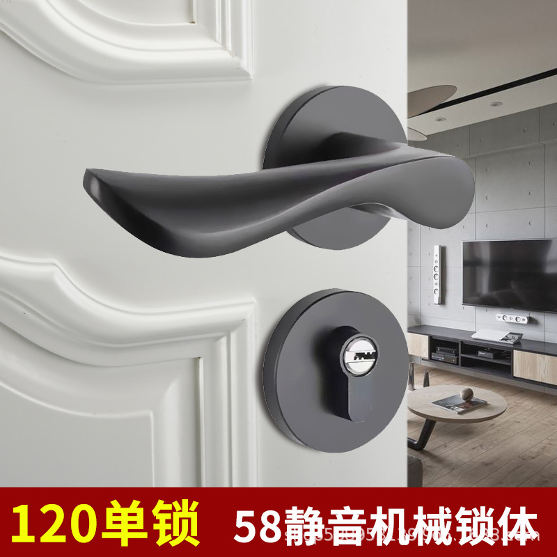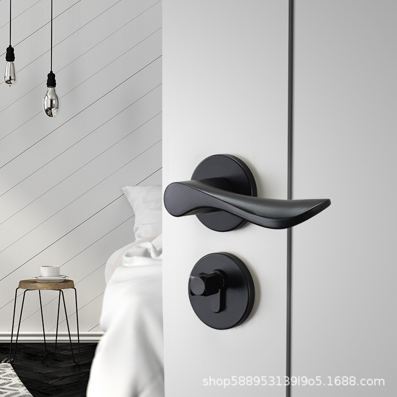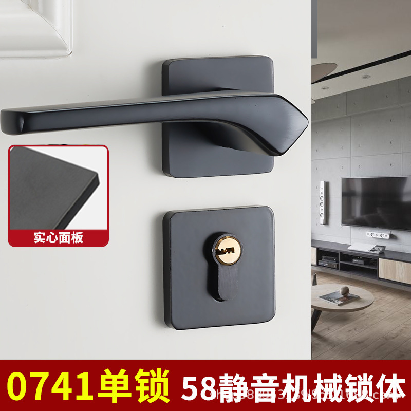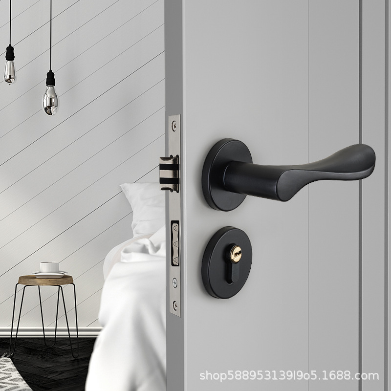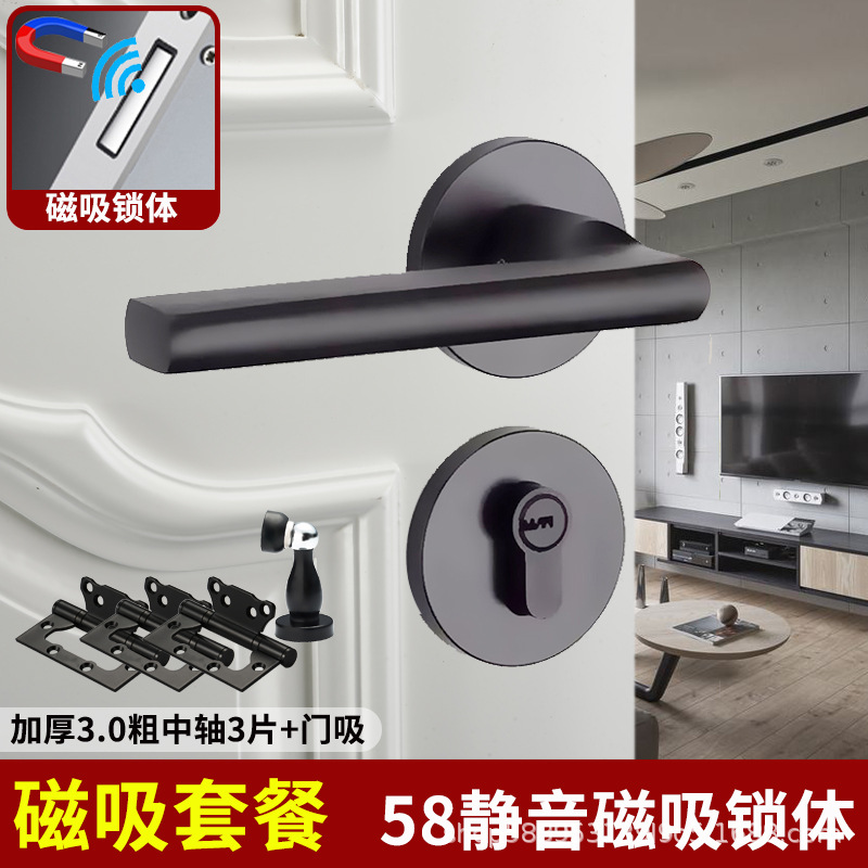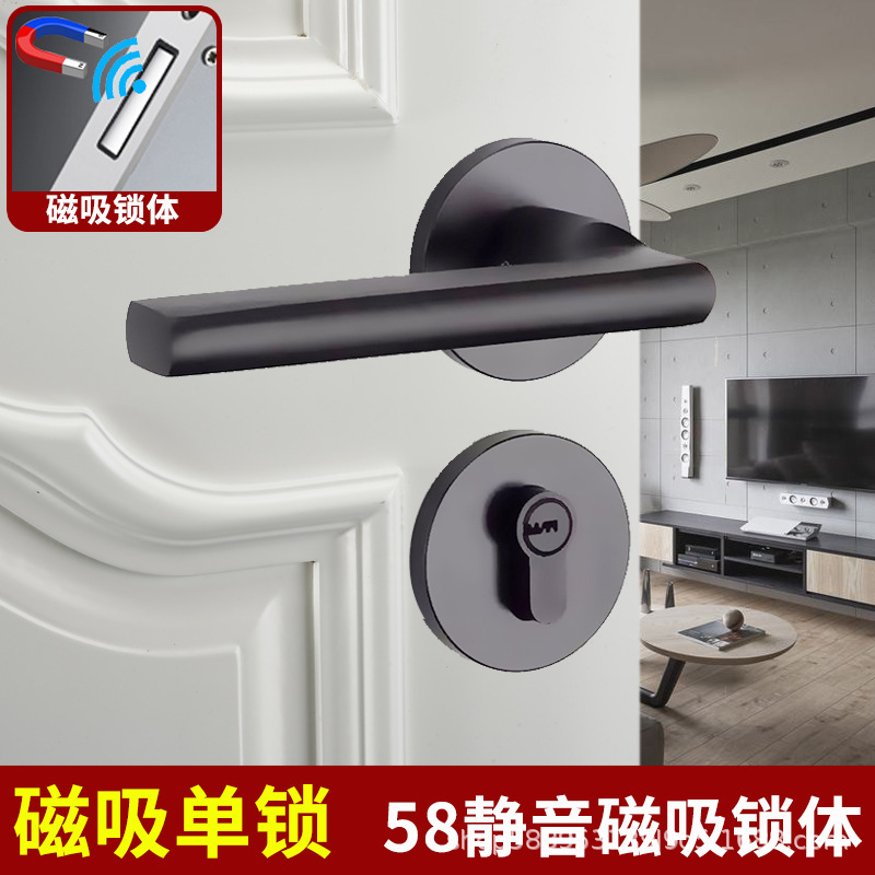 黑色卧室门锁室内门把手家用静音房门锁分体磁吸锁木门锁锁具房间