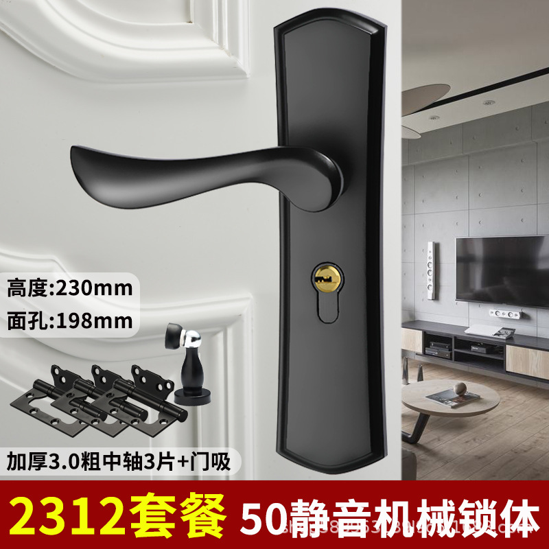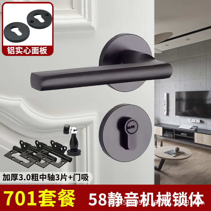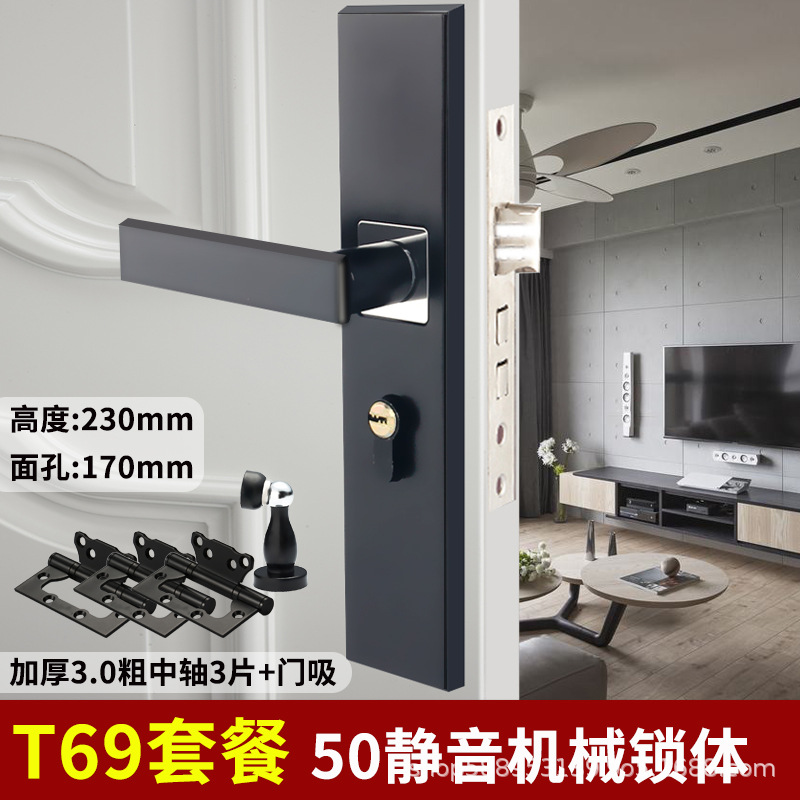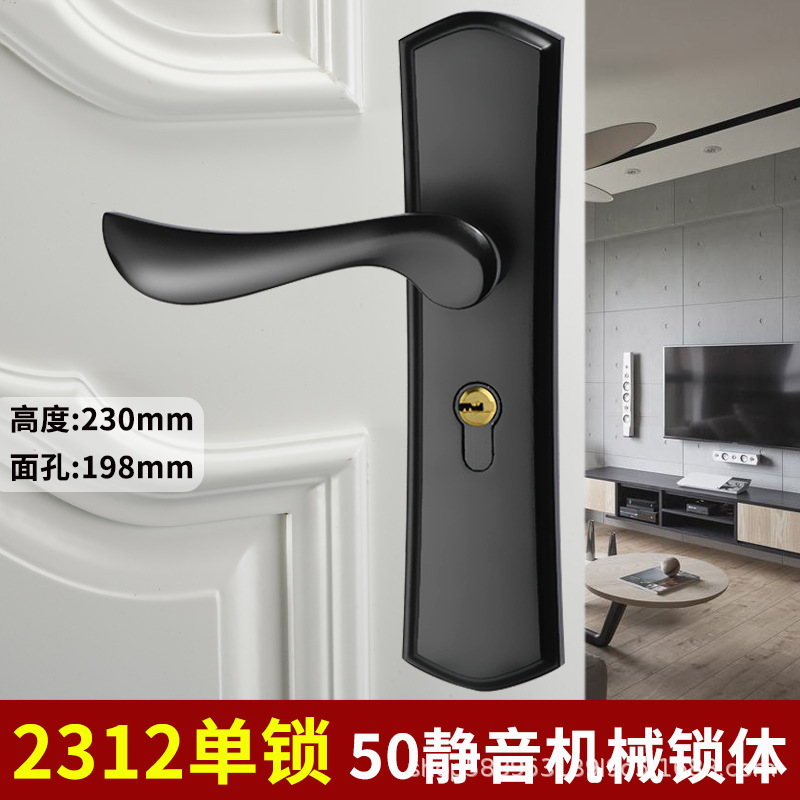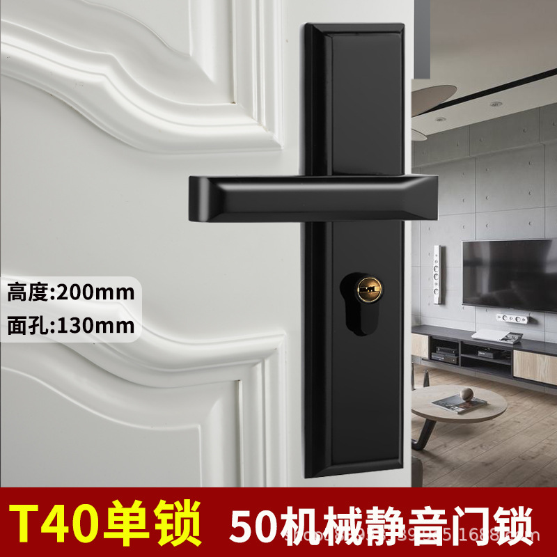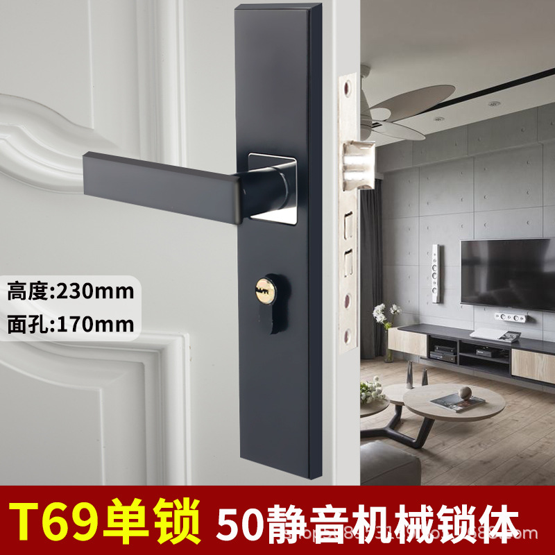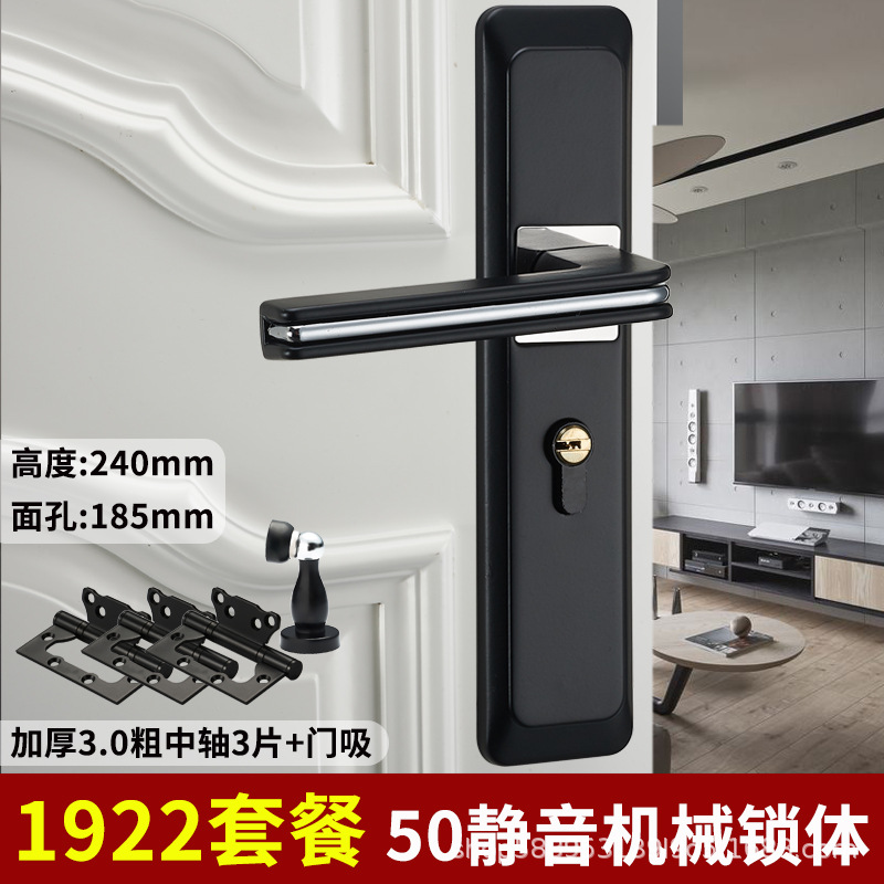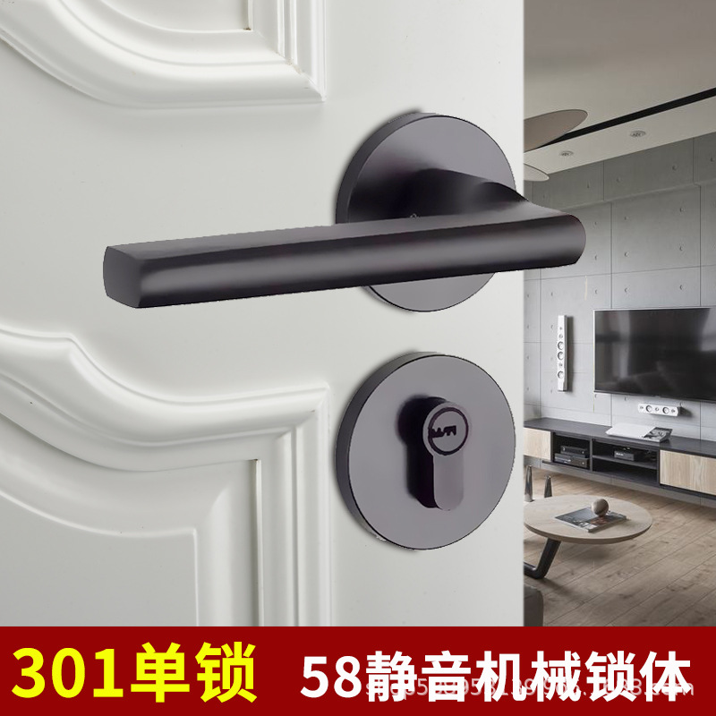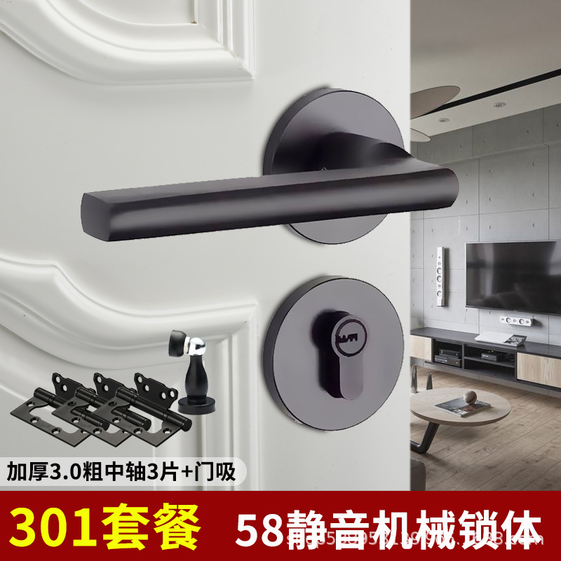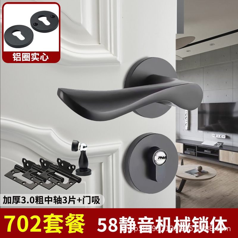 黑色卧室门锁室内门把手家用静音房门锁分体磁吸锁木门锁锁具房间