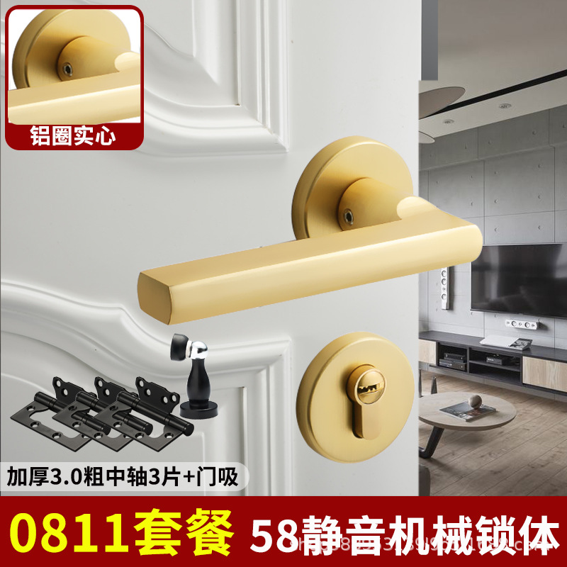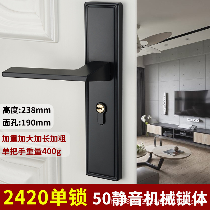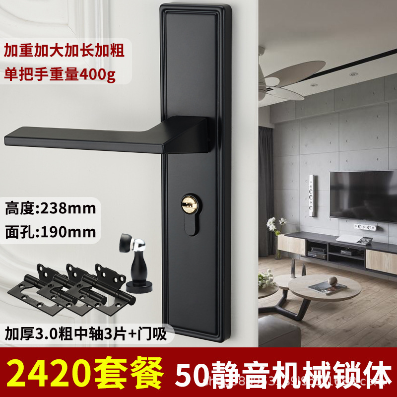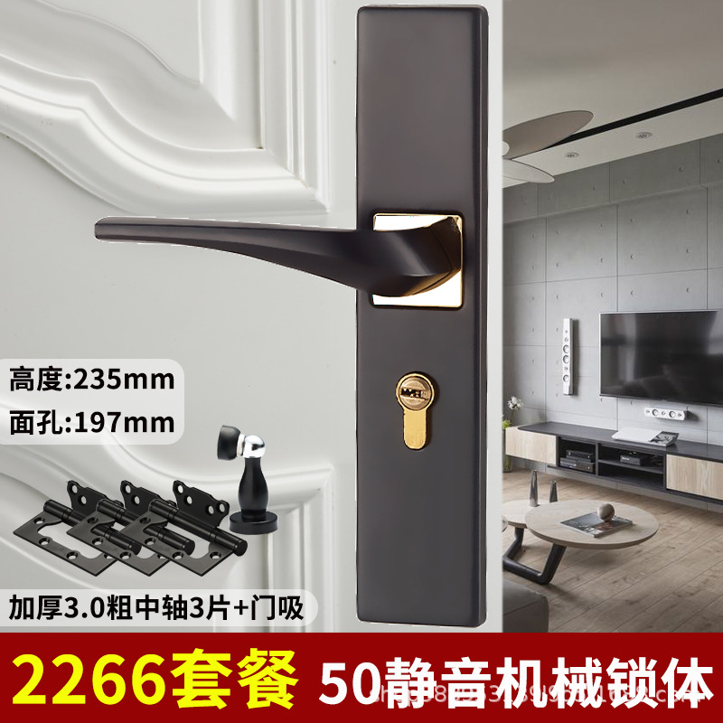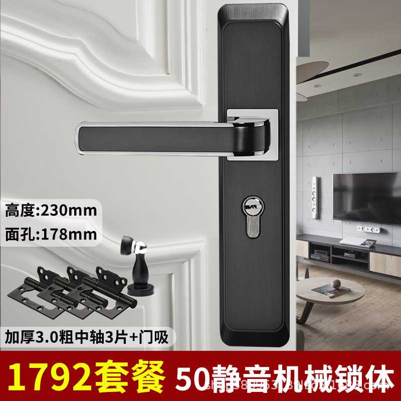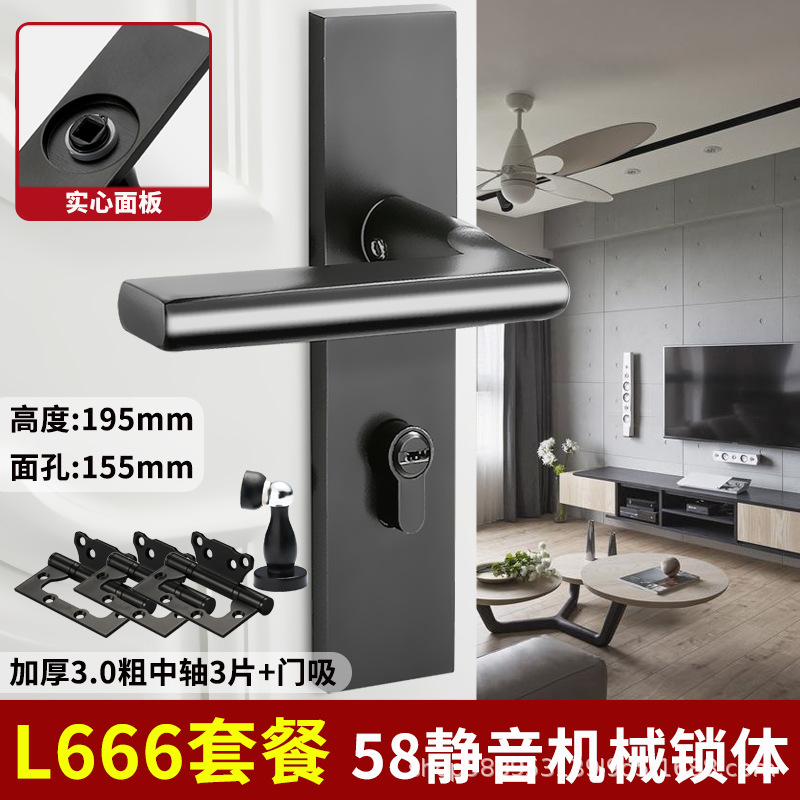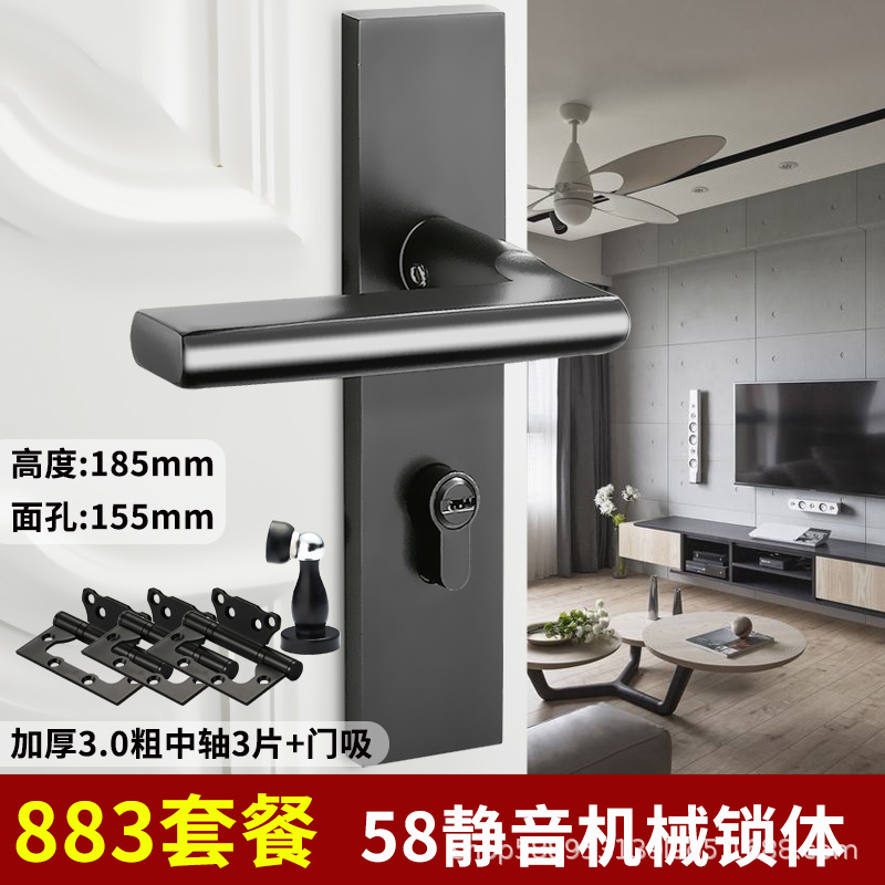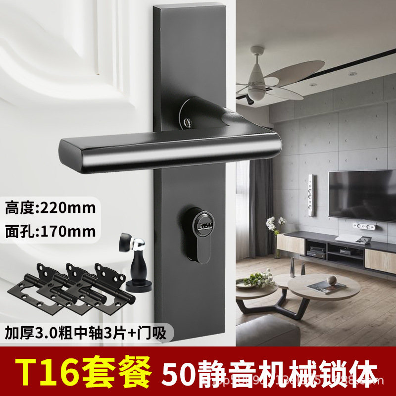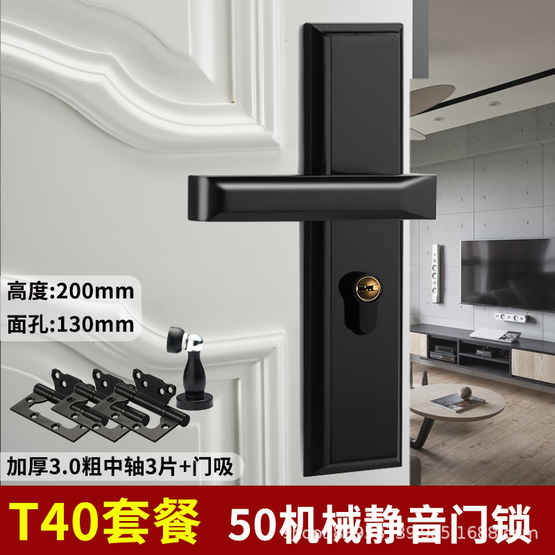 黑色卧室门锁室内门把手家用静音房门锁分体磁吸锁木门锁锁具房间