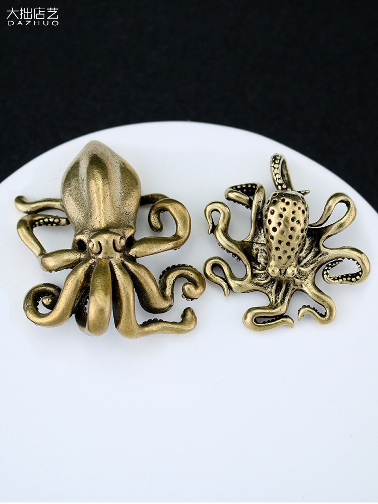 实心纯黄铜办公桌面小摆件八爪鱼古铜茶宠饰品工艺品礼品手把玩件