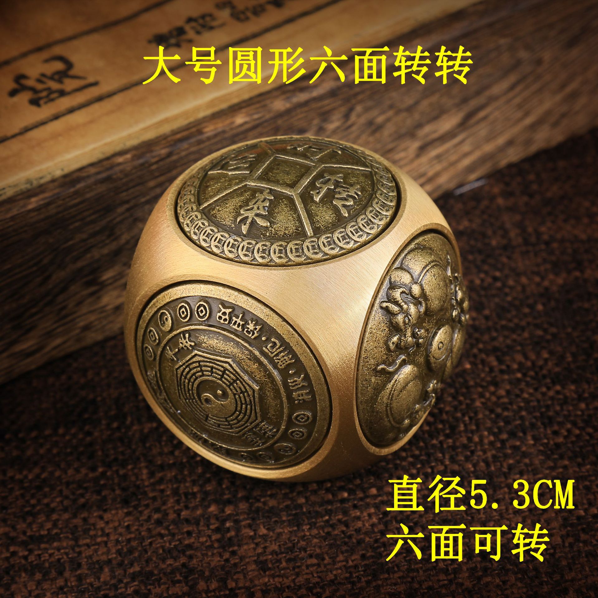 黄铜健身球圆形六面转转六面魔方解压手把件