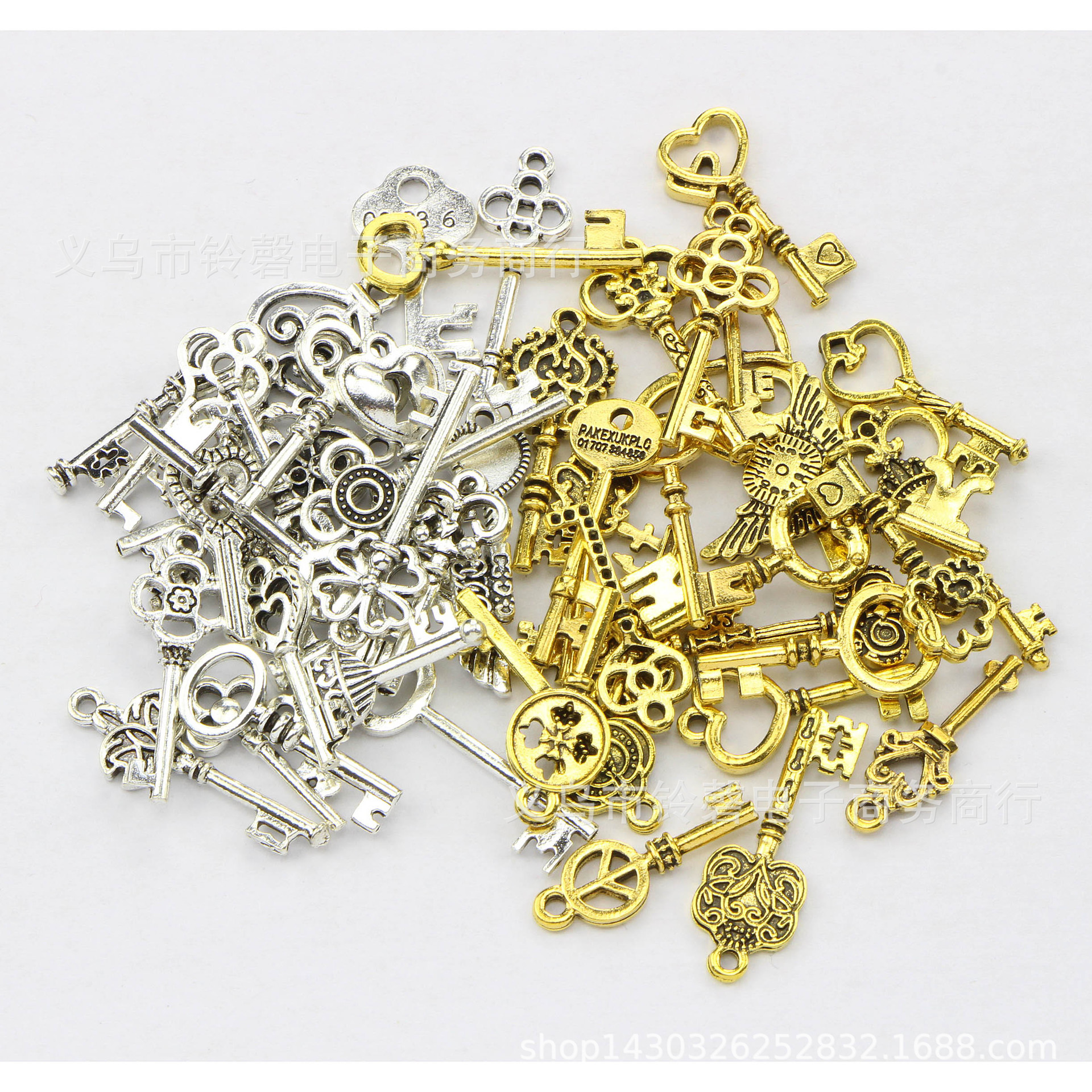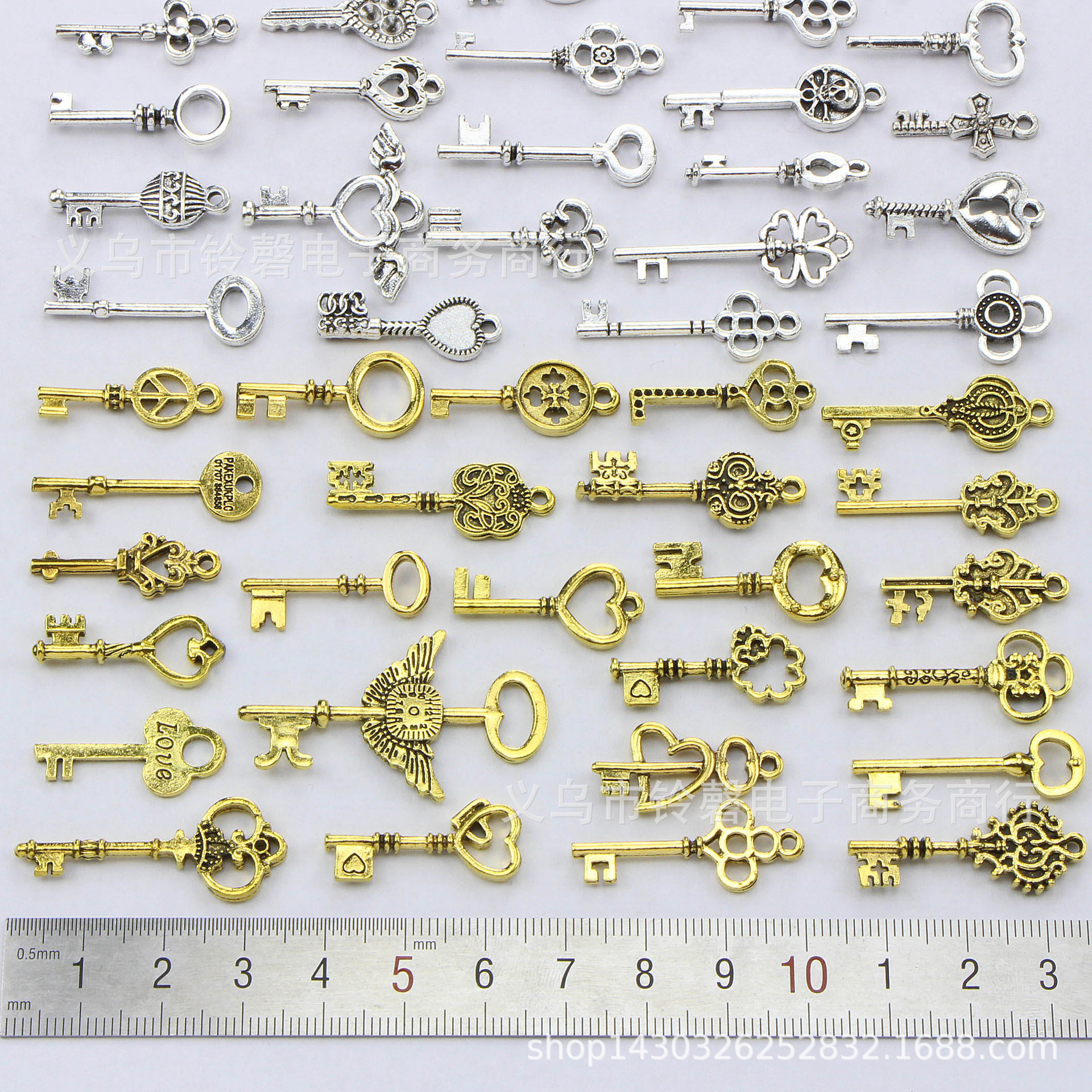 厂家diy金属饰品配件 古金古银50款钥匙服饰笔记本配件 吊坠
