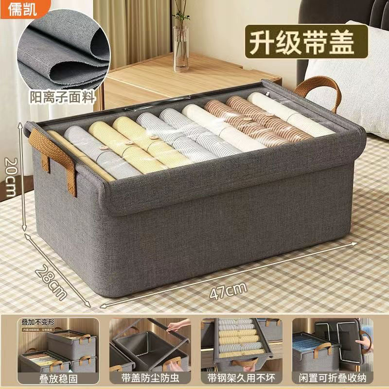 阳离子衣物收纳箱布艺收纳盒抽屉式可折叠大容量衣柜带手提储物箱