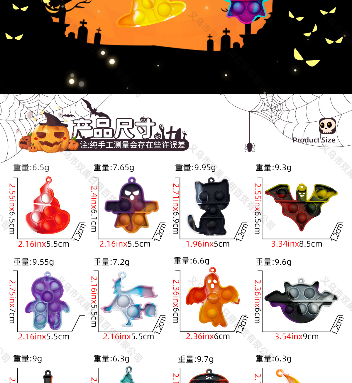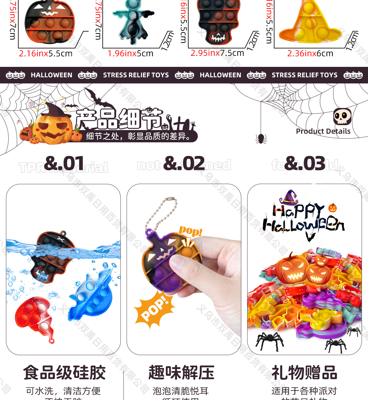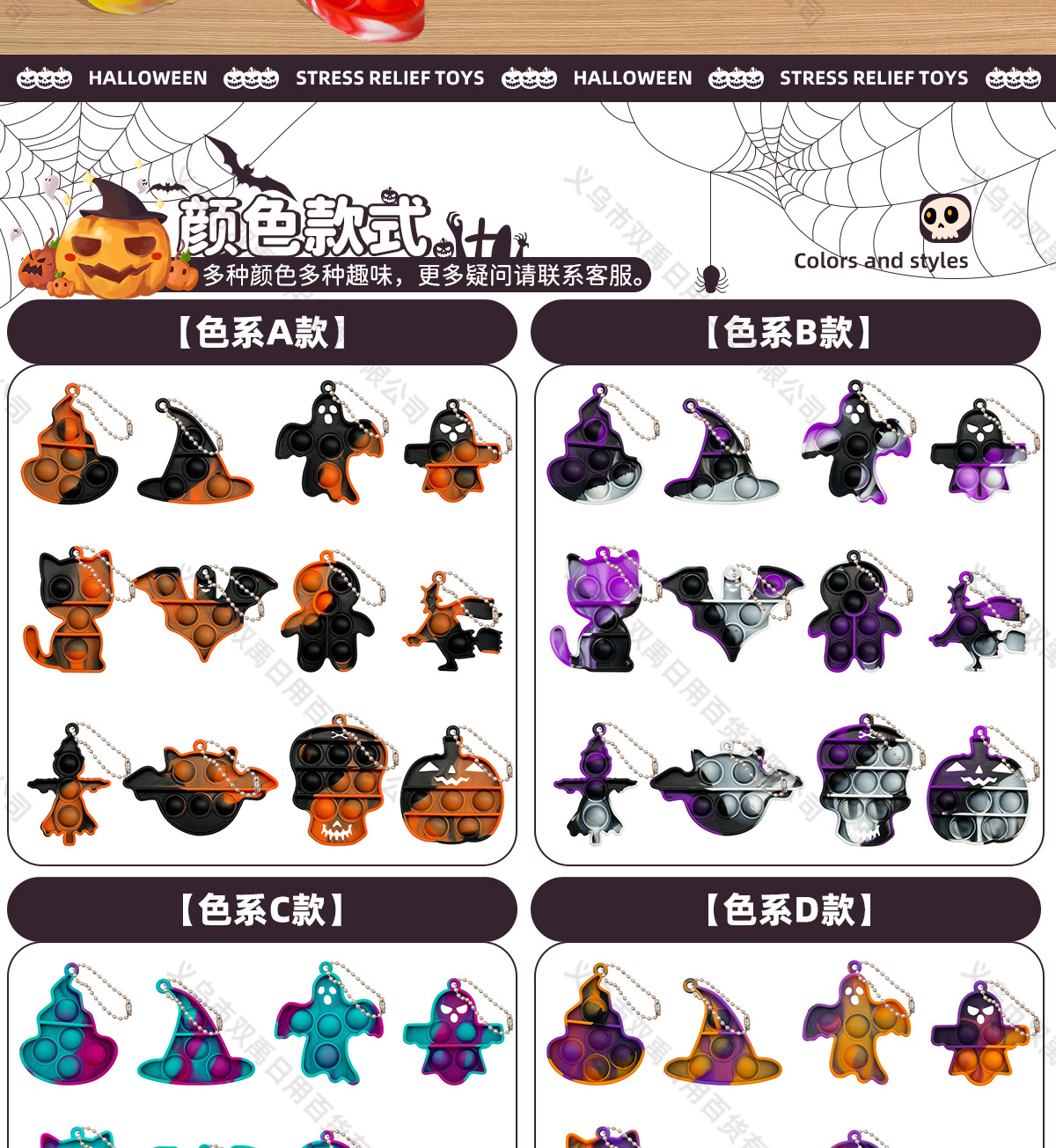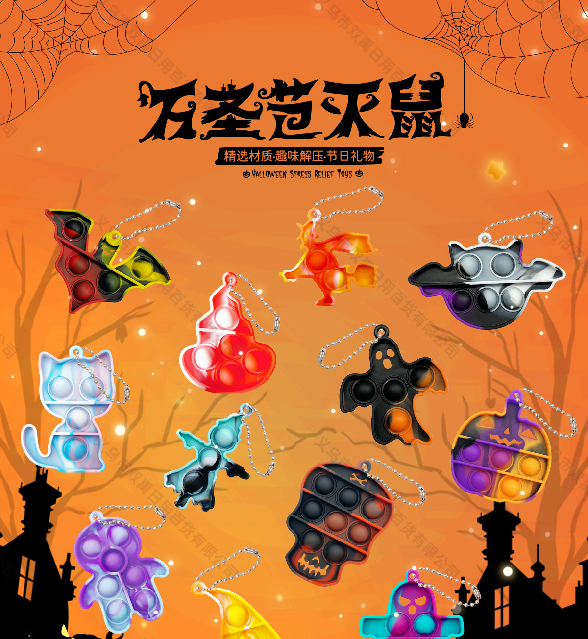 万圣节灭鼠先锋钥匙扣跨境pop it硅胶挂件手指泡泡乐解压减压玩具