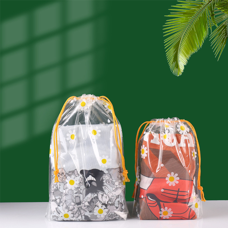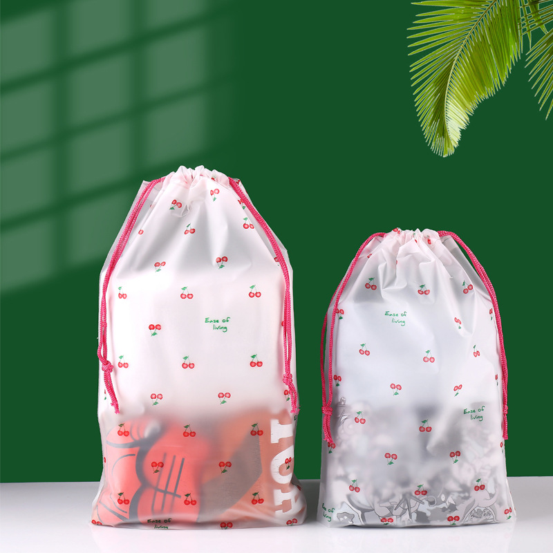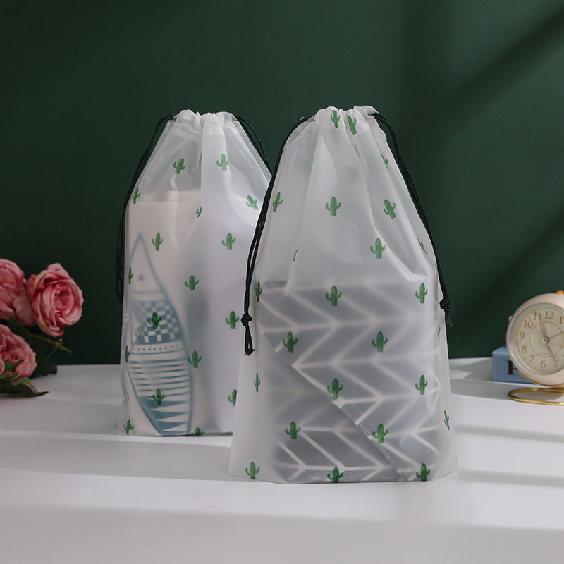 抽绳束口袋磨砂鞋子旅行收纳袋透明袜子打包袋塑料服装包装袋批发