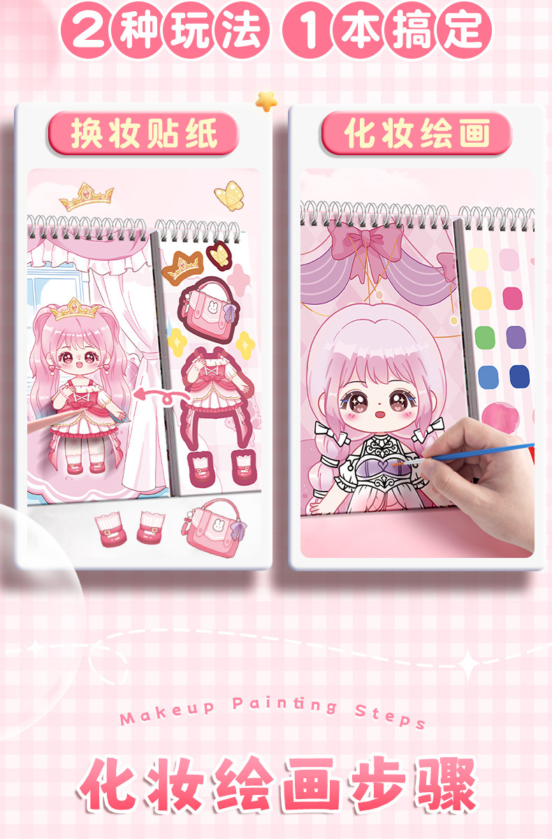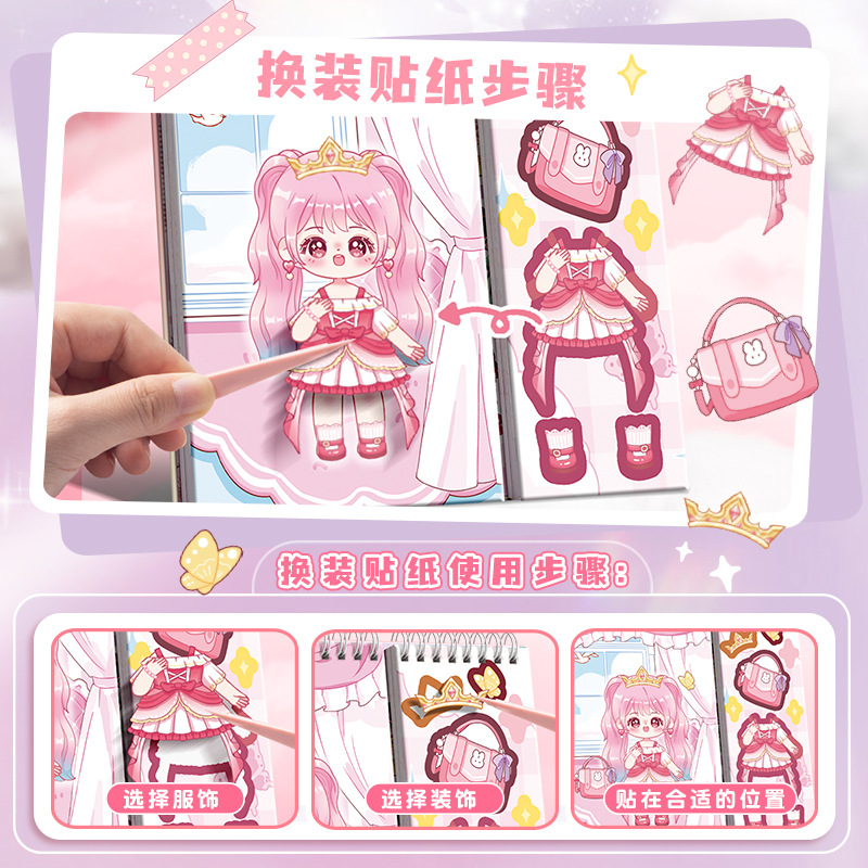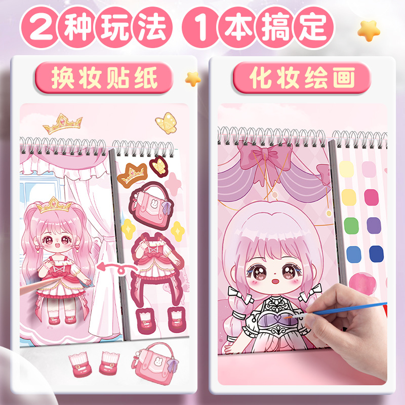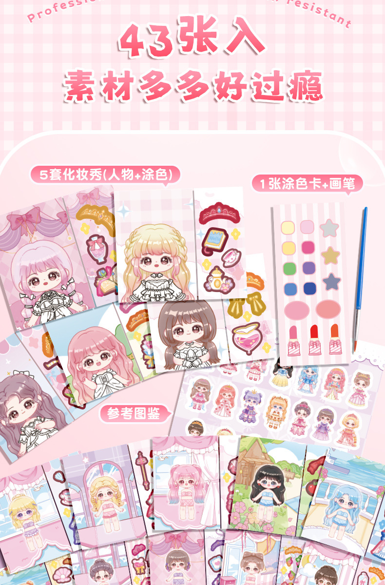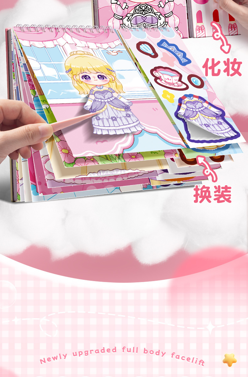 儿童益智手工diy换装贴纸可爱女生化妆卡通新款手账涂鸦装饰素材