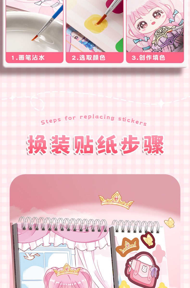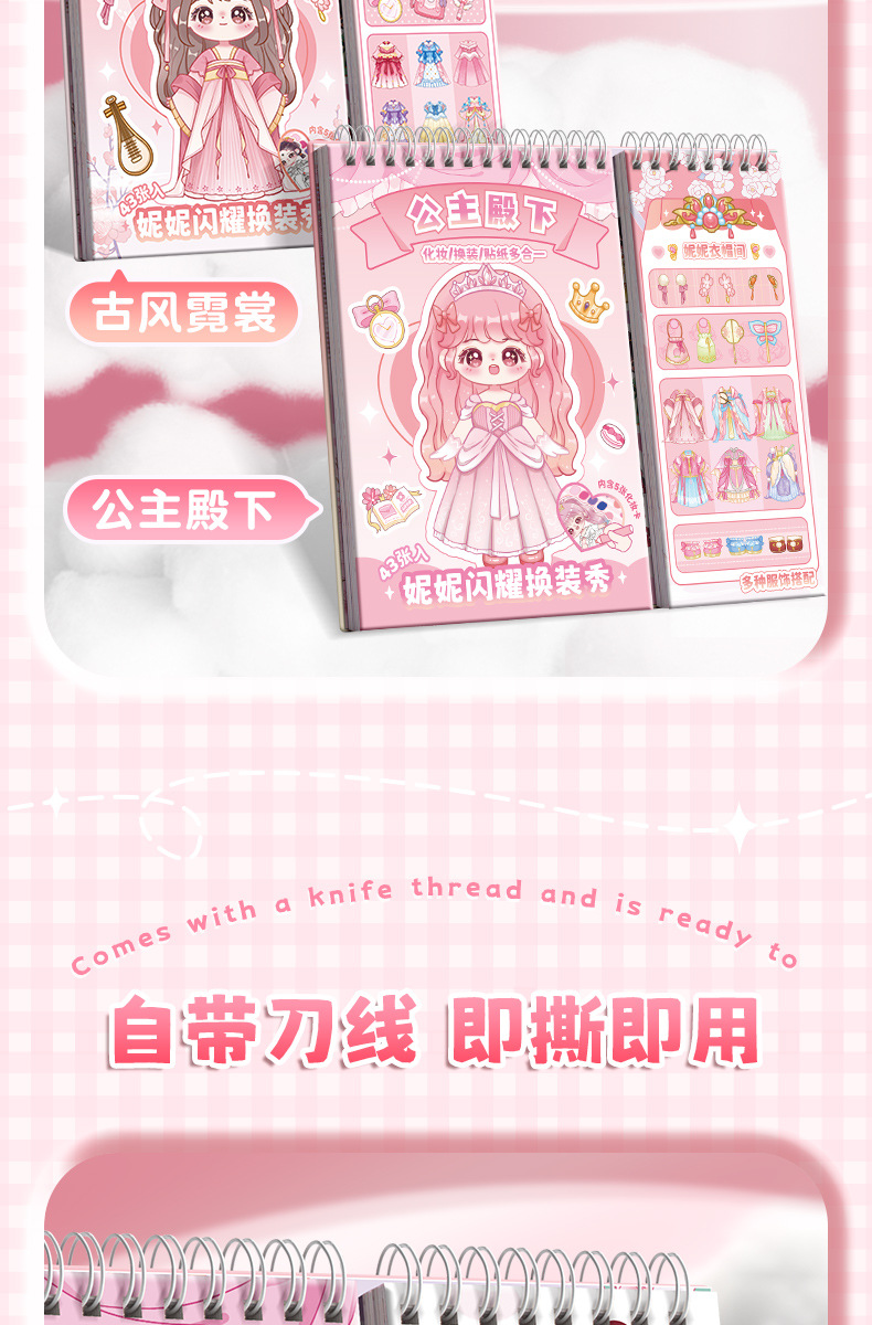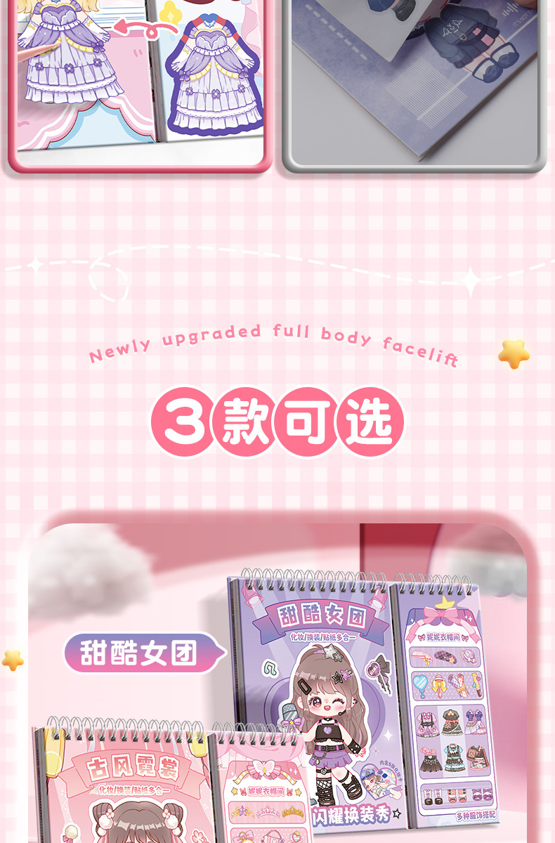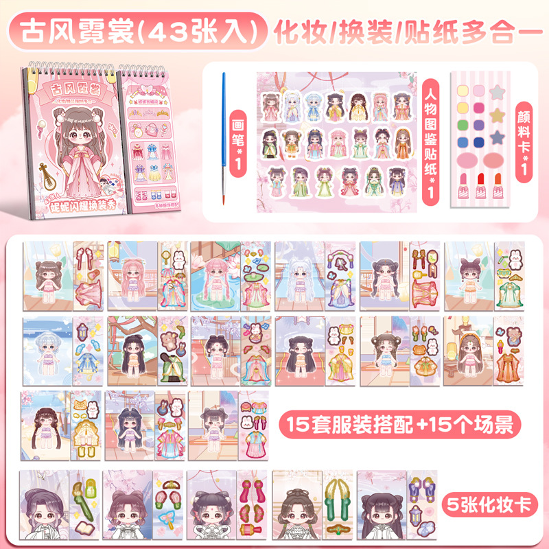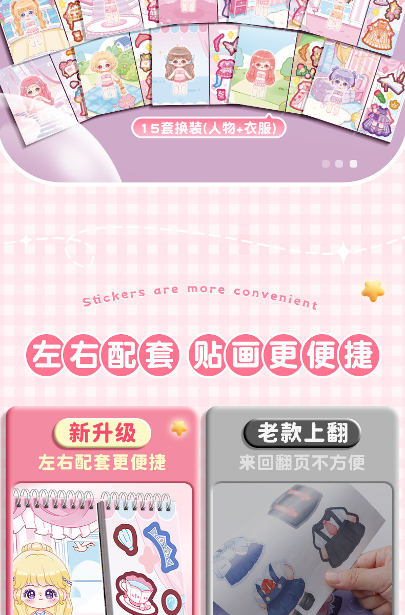 儿童益智手工diy换装贴纸可爱女生化妆卡通新款手账涂鸦装饰素材