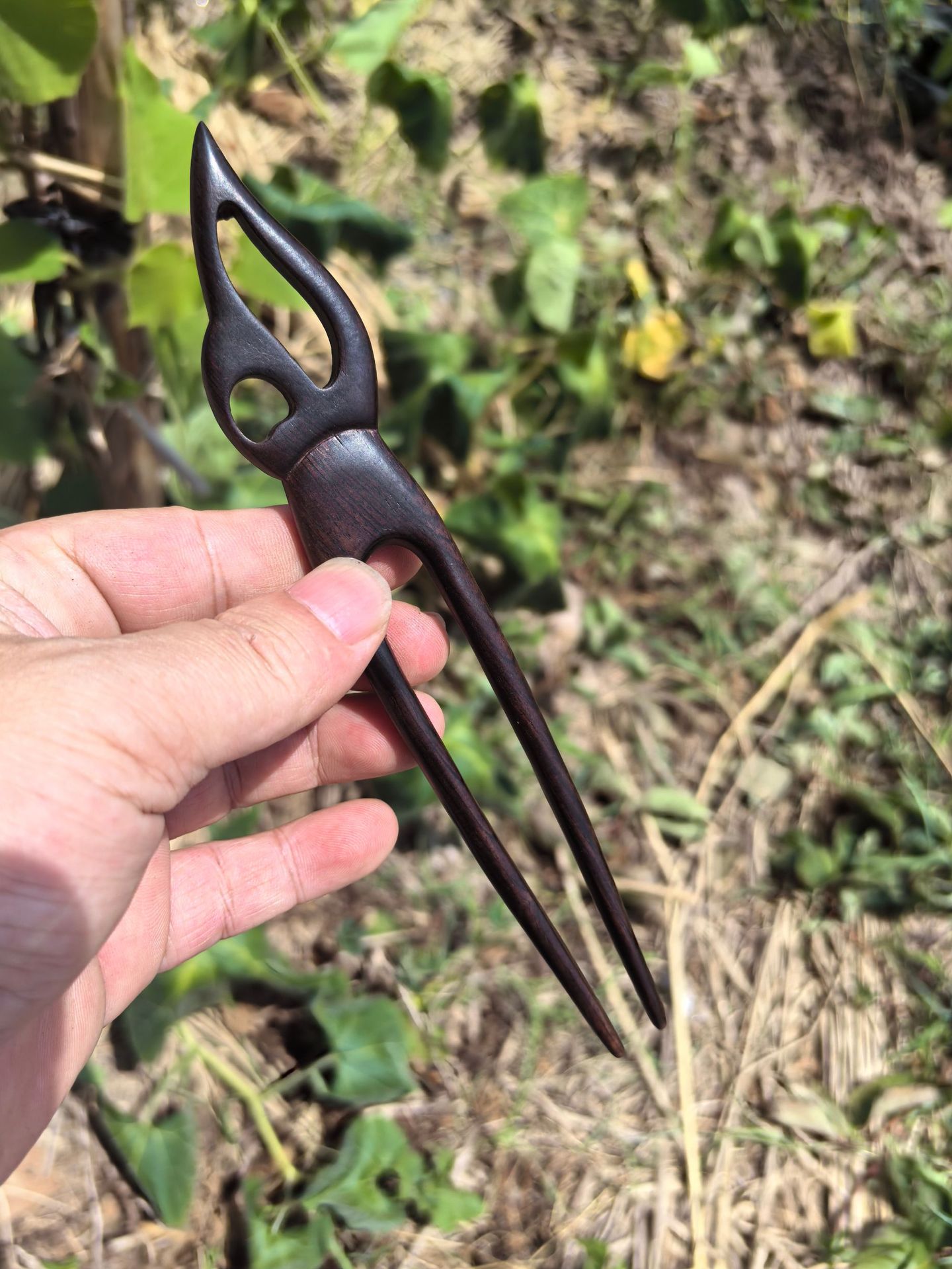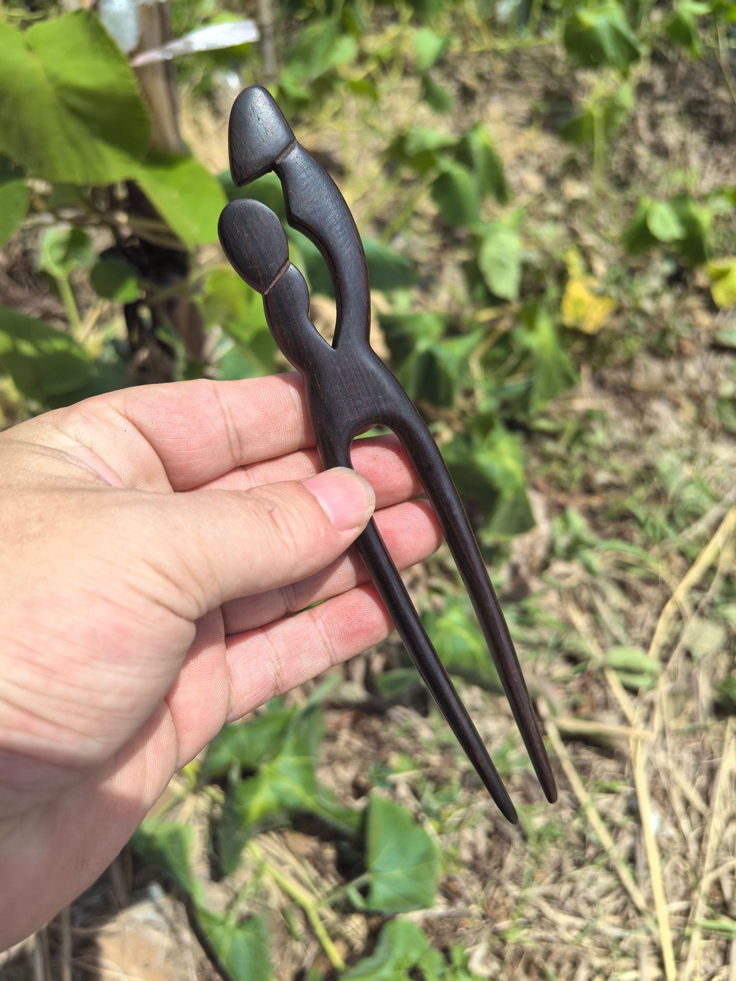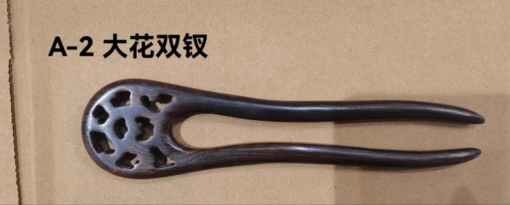 U型双钗手工檀木簪盘发头饰简约现代木发簪汉服古风配饰簪子批发