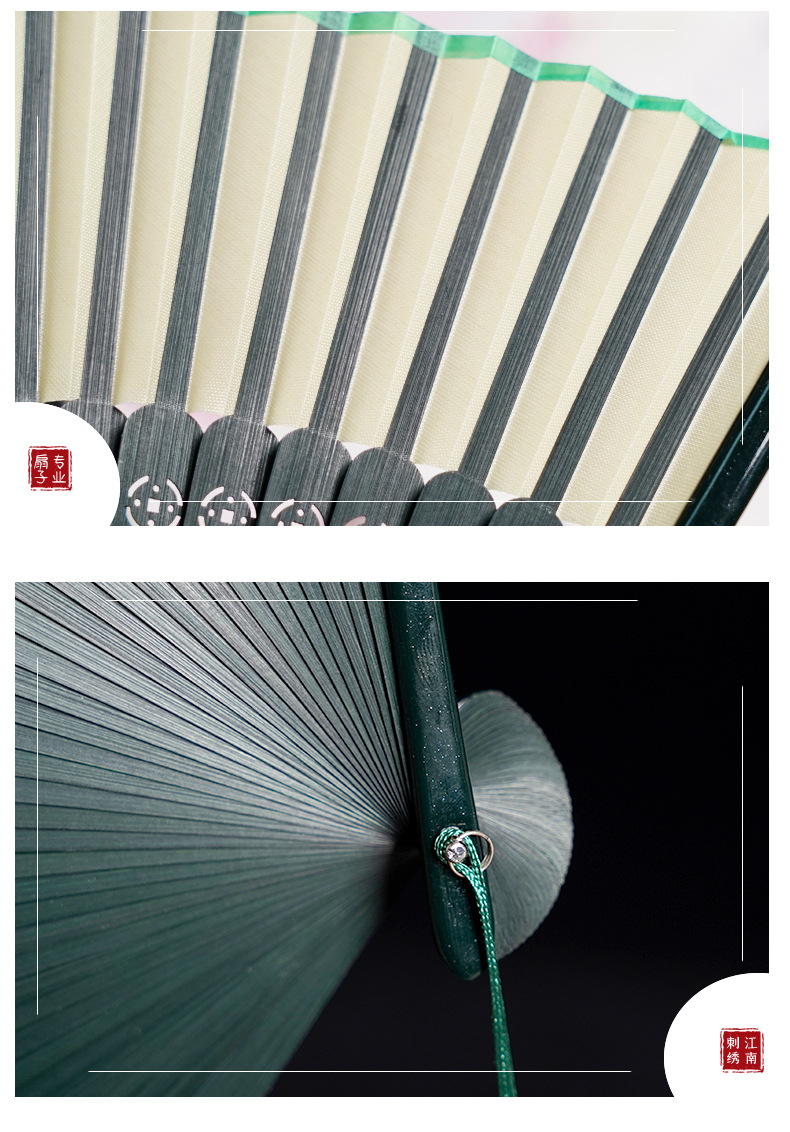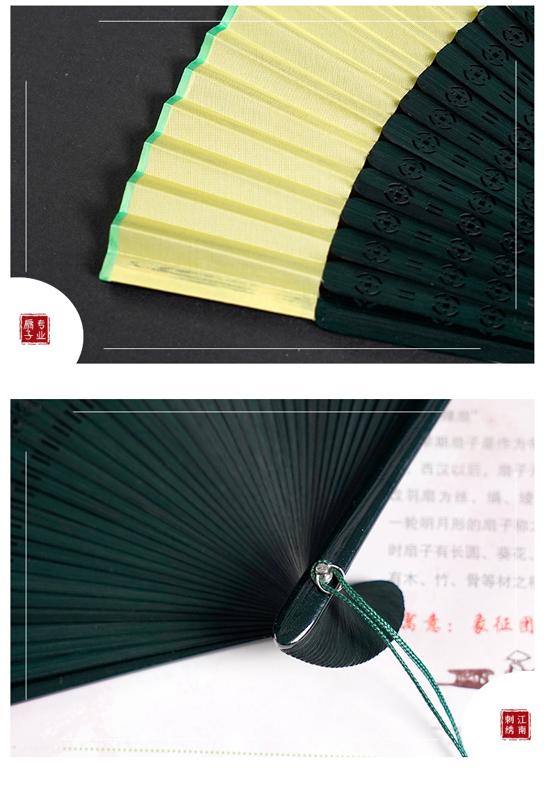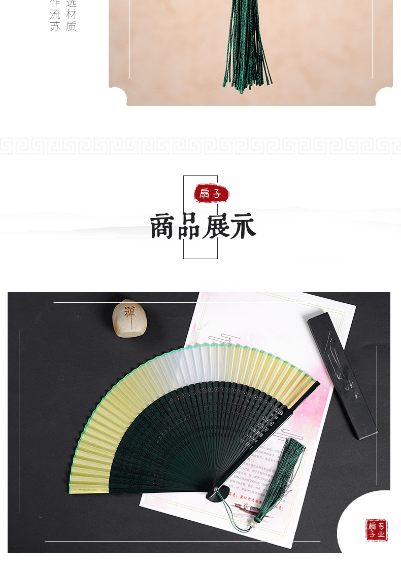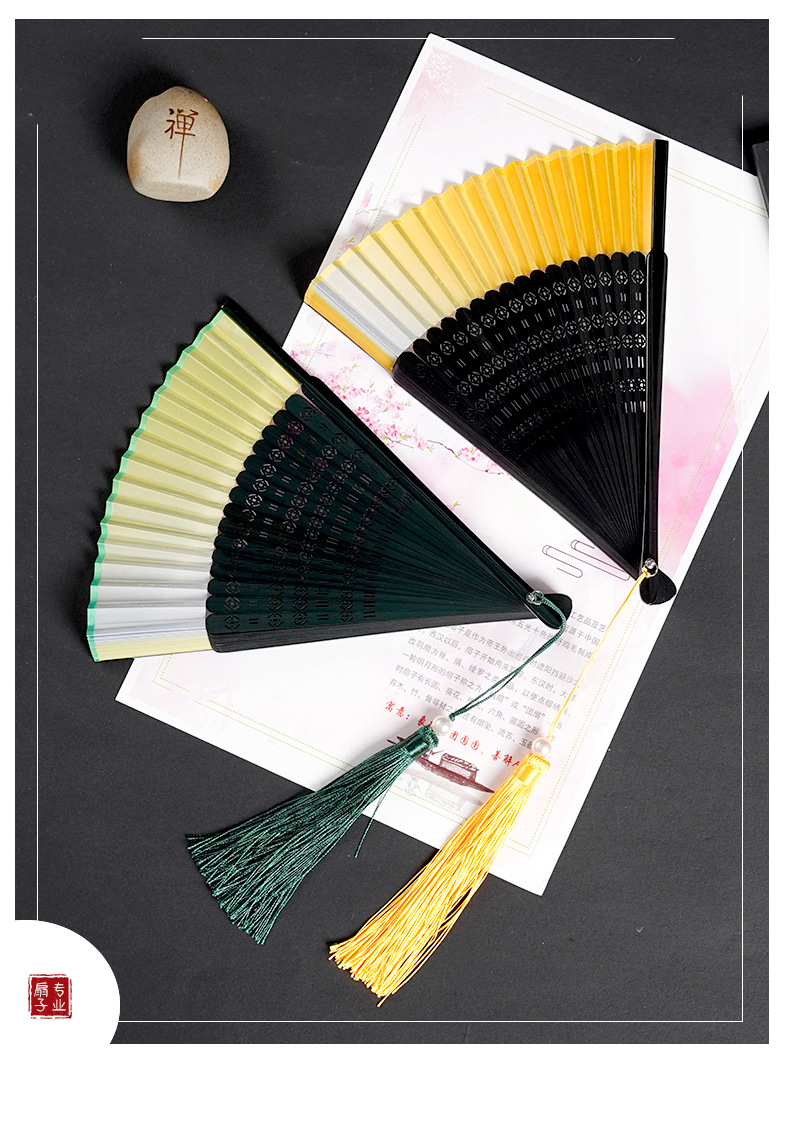 7寸中国风舞蹈扇子头青钢琴烤漆扇骨珍珠流苏汉服模特走秀折扇