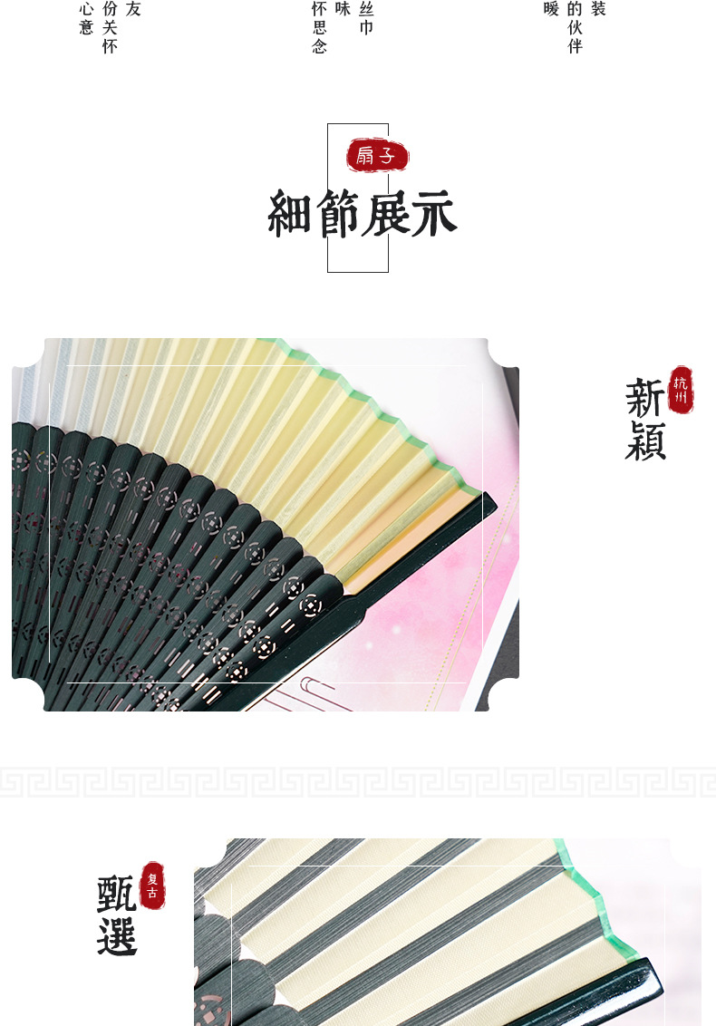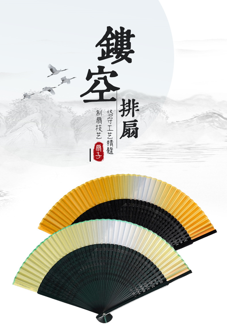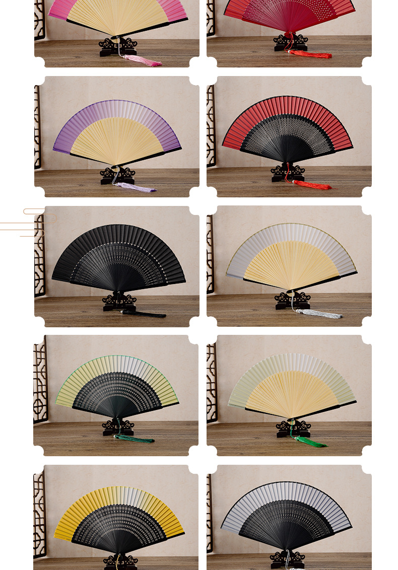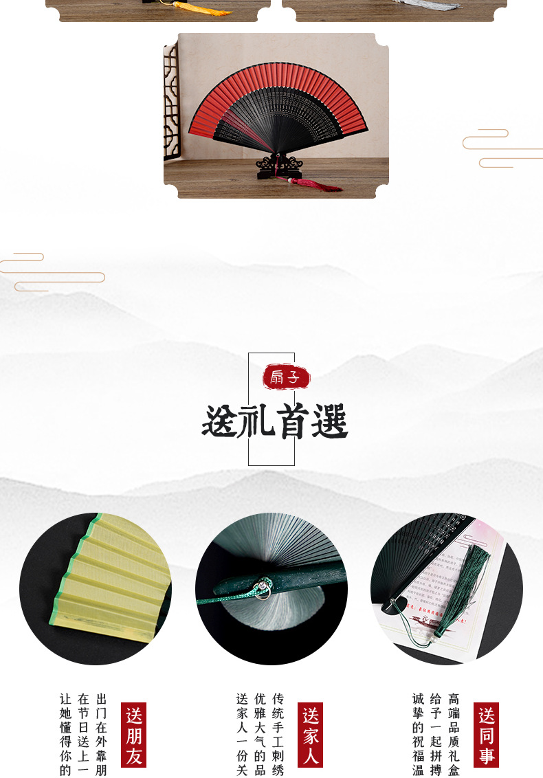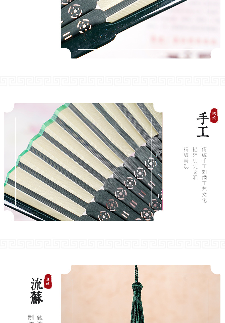 7寸中国风舞蹈扇子头青钢琴烤漆扇骨珍珠流苏汉服模特走秀折扇