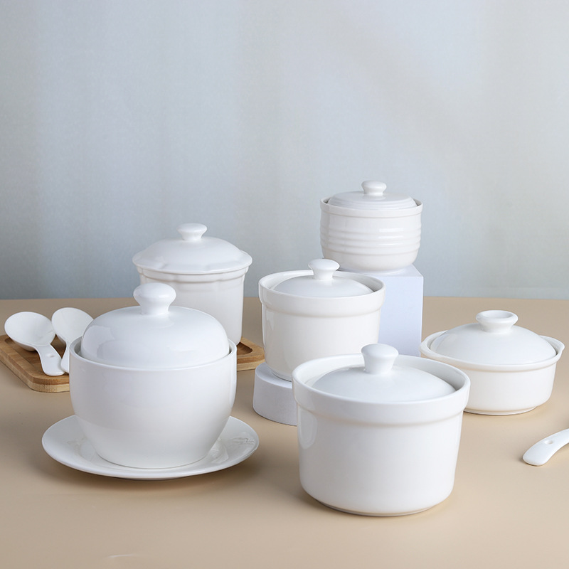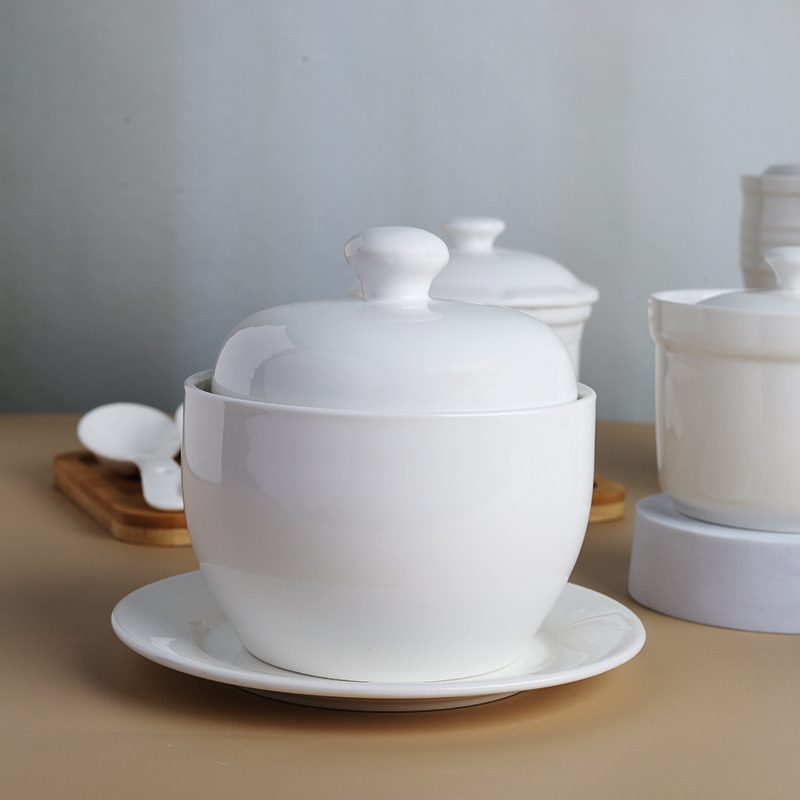 陶瓷炖盅酒店专用隔水炖带盖小炖罐汤盅燕窝盅甜品盅蒸蛋碗一人份