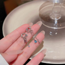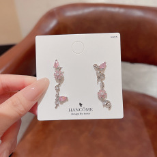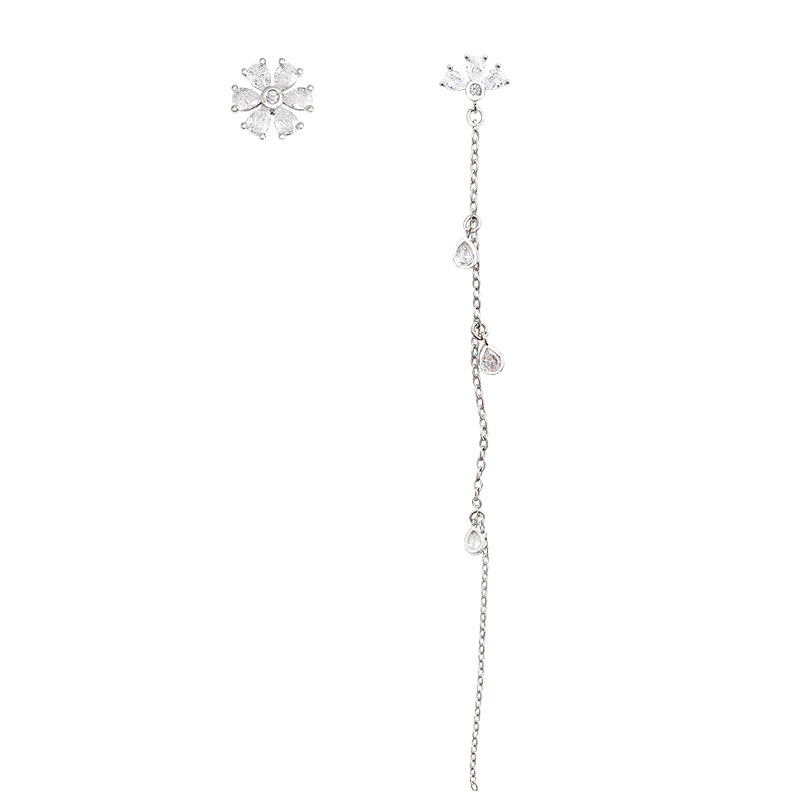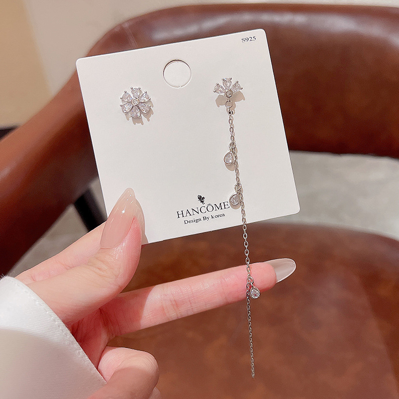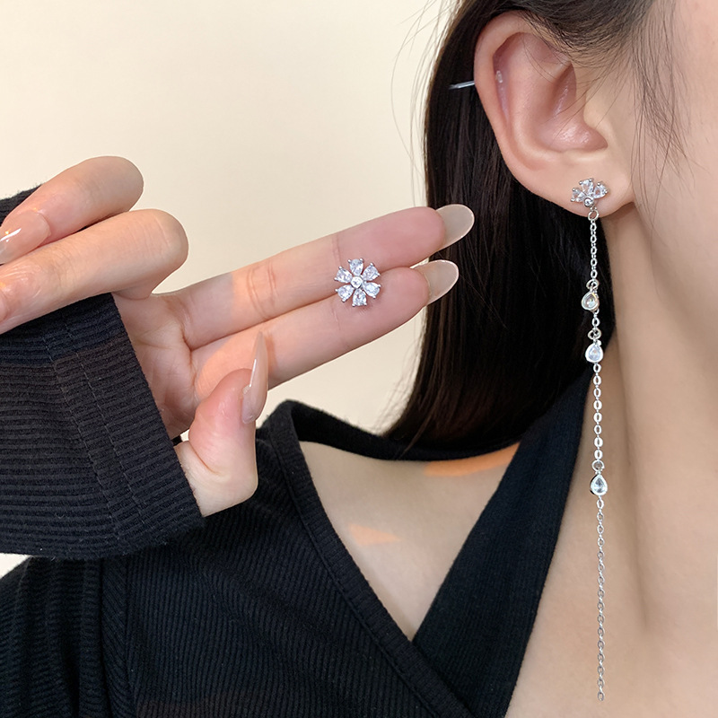 S925银针夸张气质长款流苏耳环女ins潮精致锆石花朵耳钉耳饰批发
