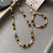 时尚气质美拉德虎眼石项链女施家澳白珍珠手链优雅个性锁骨链颈链