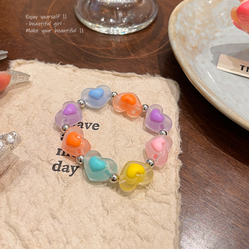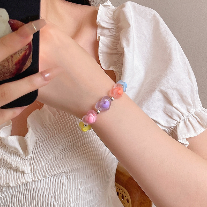 多巴胺甜美彩色爱心手链女百搭可爱风串珠手串网红同款手饰品批发