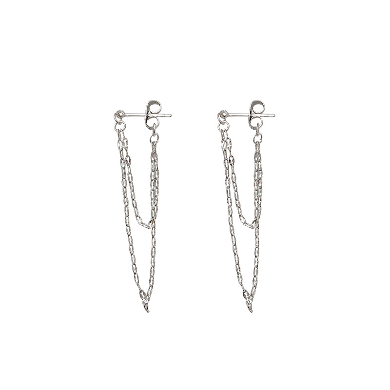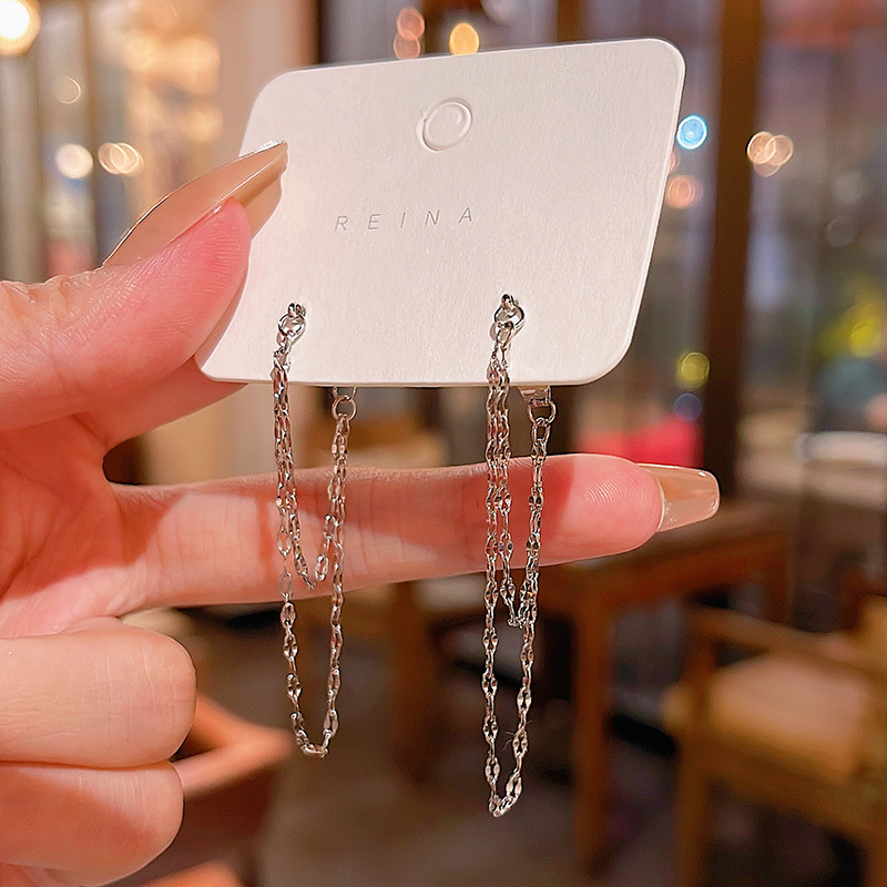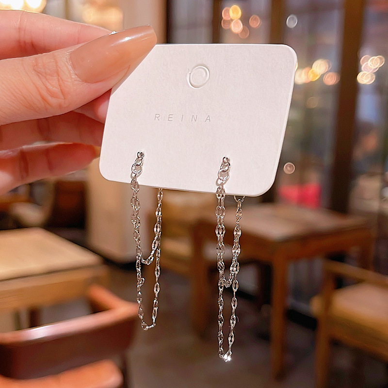 S925银针双层流苏嘴唇链耳环女轻奢小众网红同款耳钉耳饰品批发