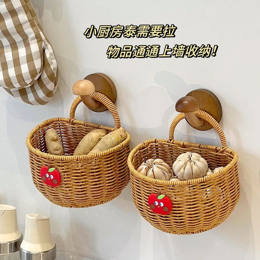 手工仿藤编织置物架厨房浴室卫生间装饰挂墙插收纳洗漱架收纳篮