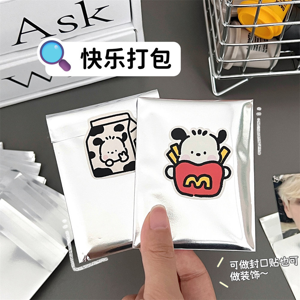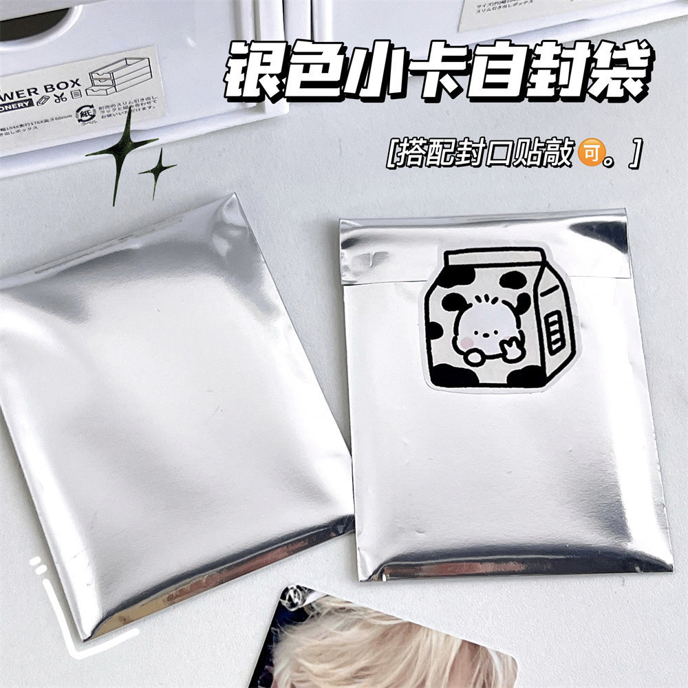银色自粘袋出卡打包包装袋ins风豆明星照片手账礼品自封袋子批发