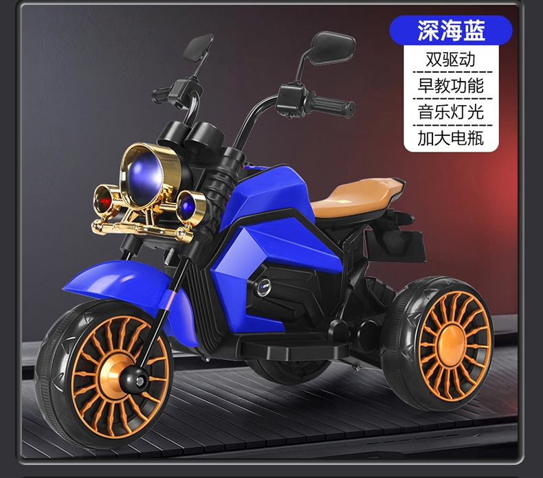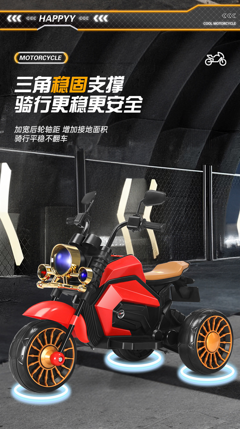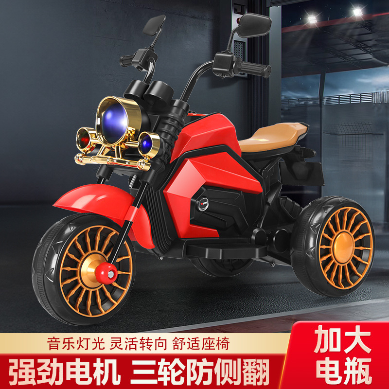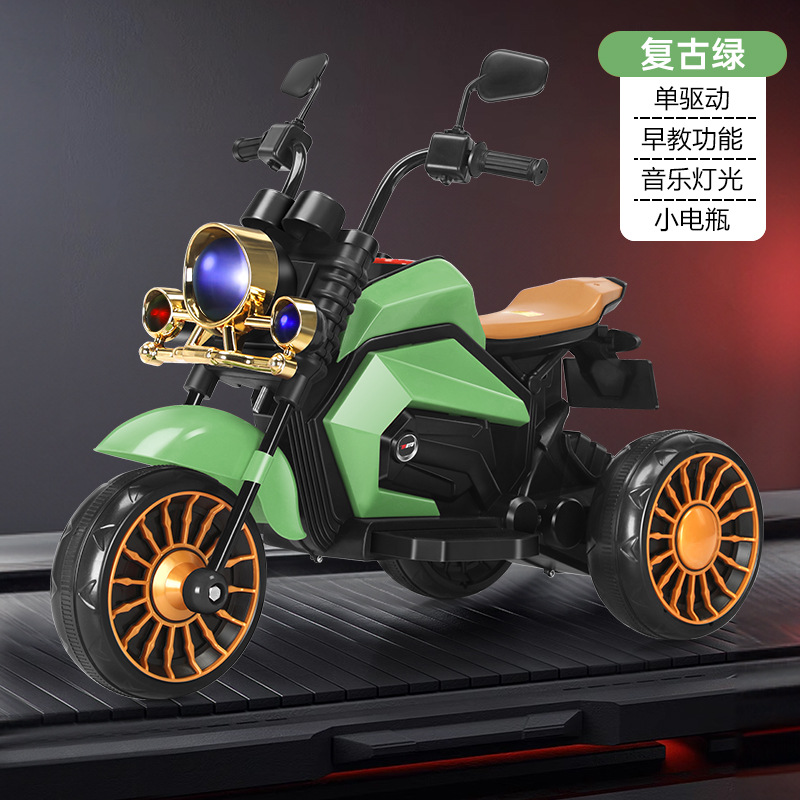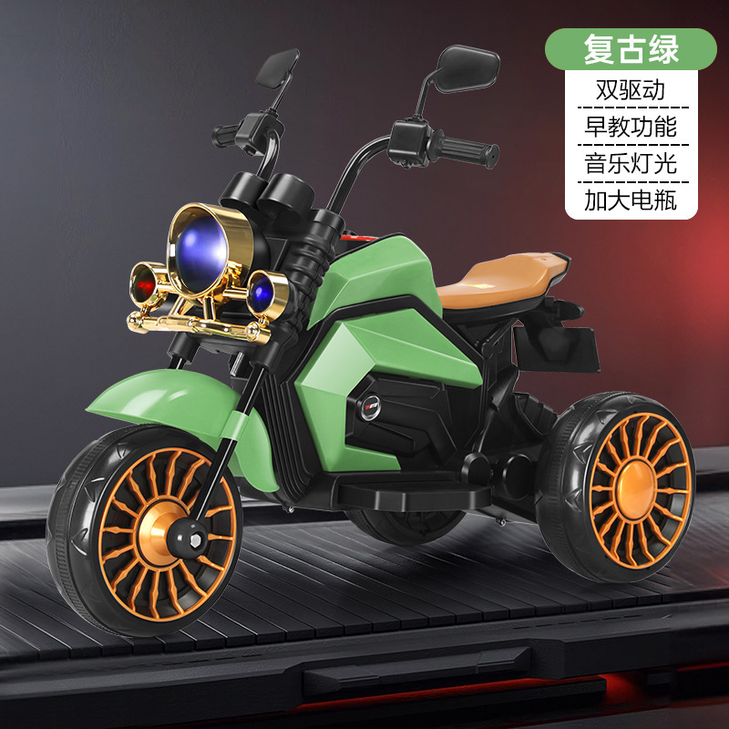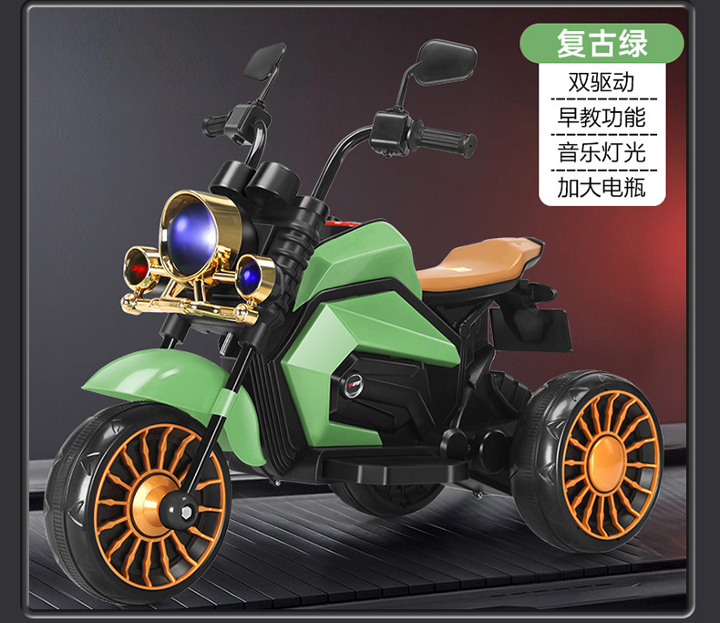 新款儿童电动车复古摩托车男女孩宝宝可坐三轮车哈雷小孩遥控电瓶