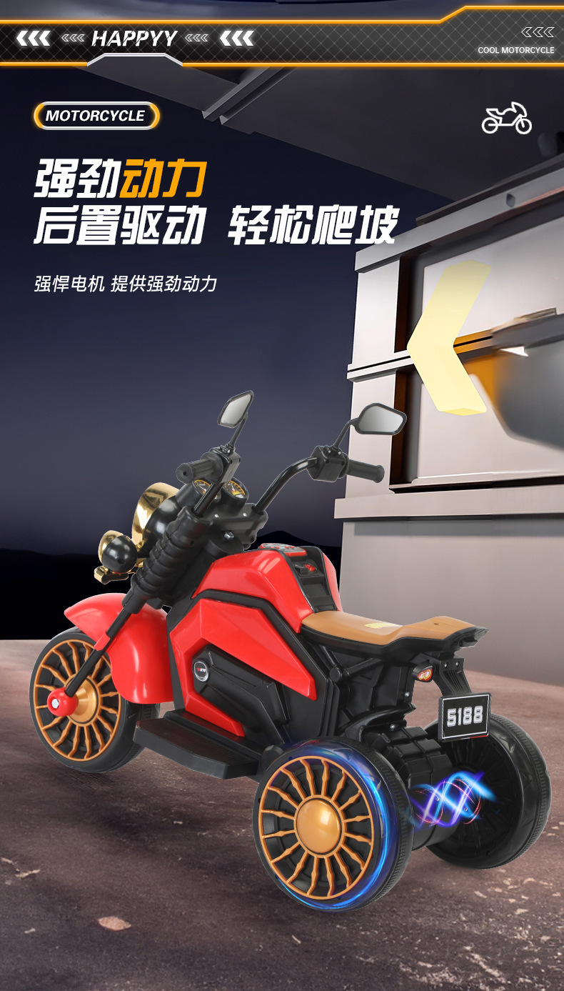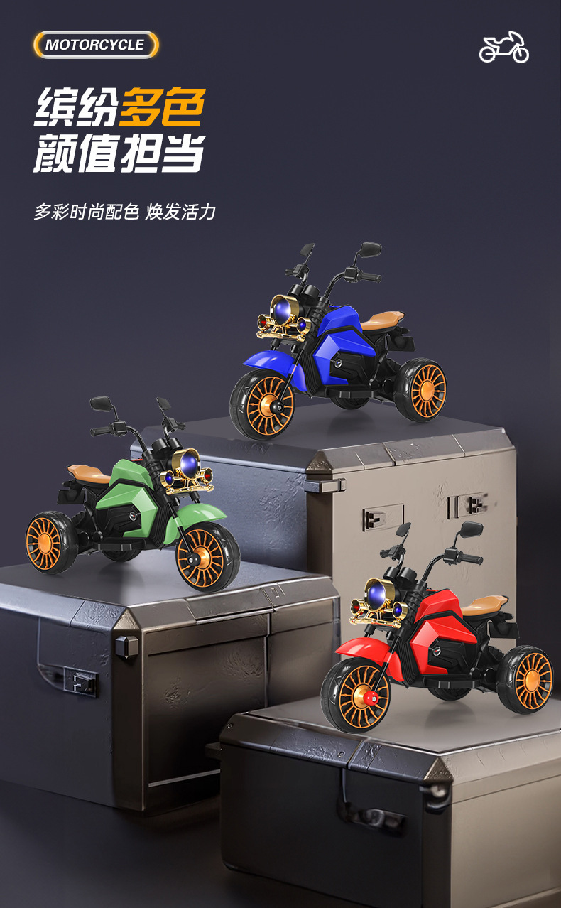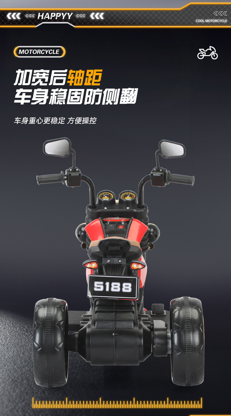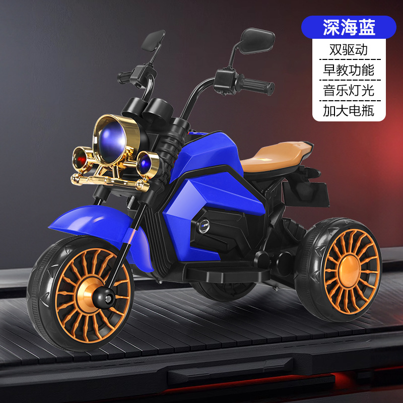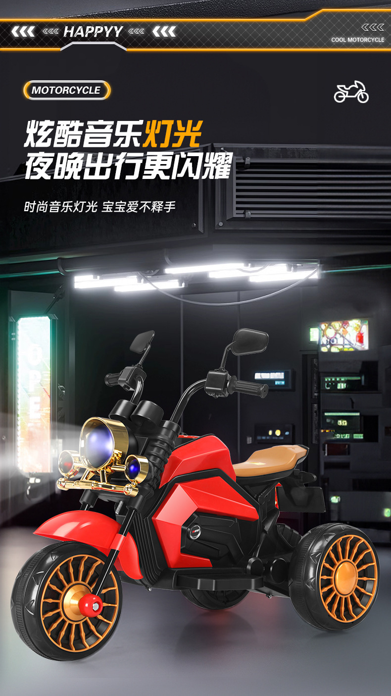 新款儿童电动车复古摩托车男女孩宝宝可坐三轮车哈雷小孩遥控电瓶