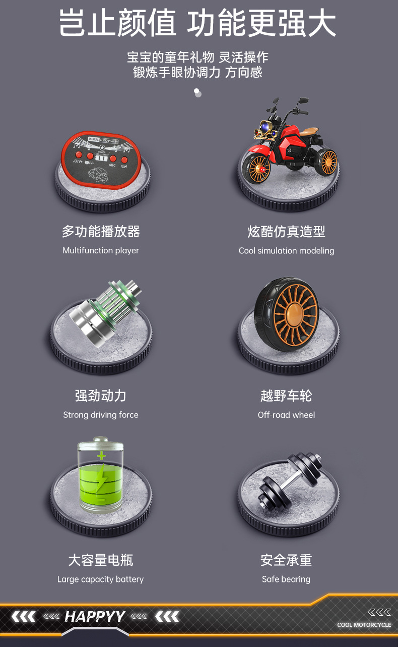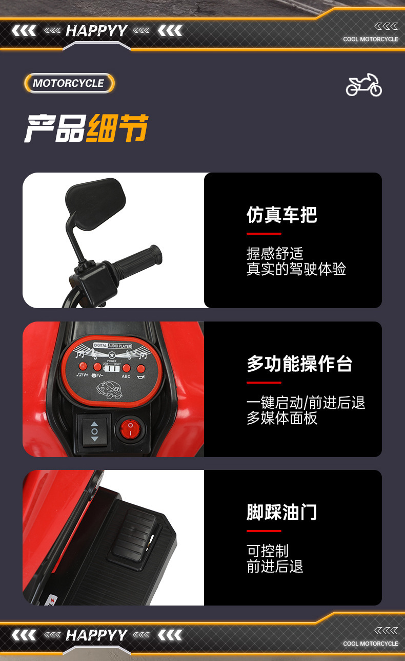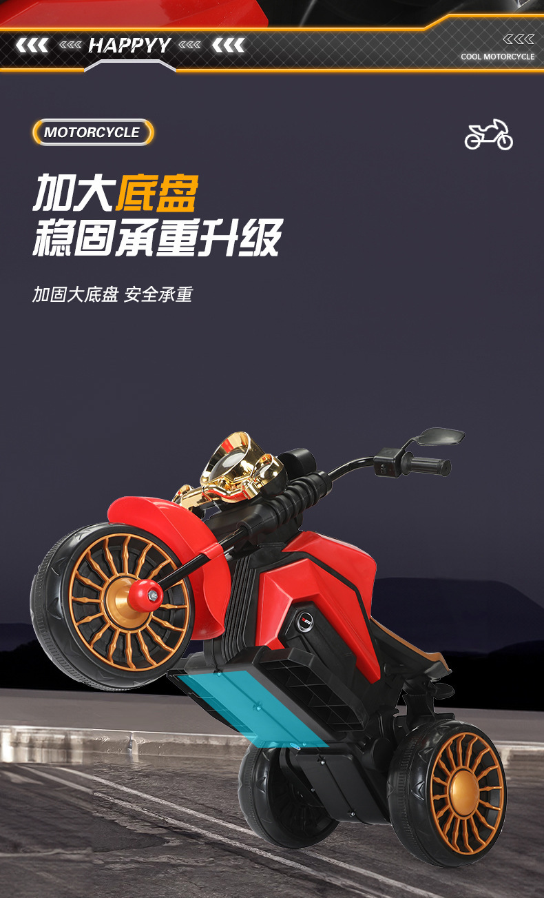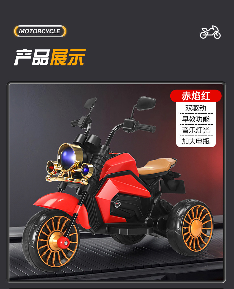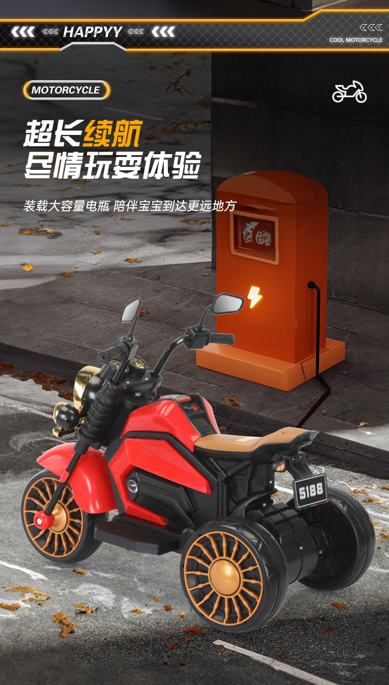新款儿童电动车复古摩托车男女孩宝宝可坐三轮车哈雷小孩遥控电瓶