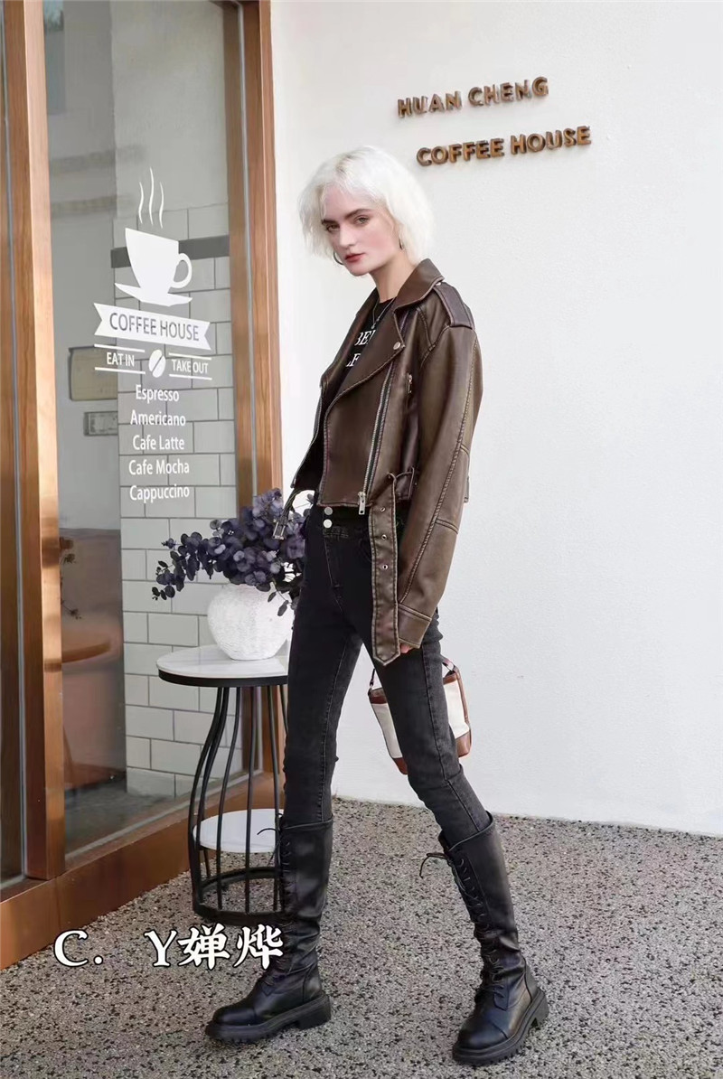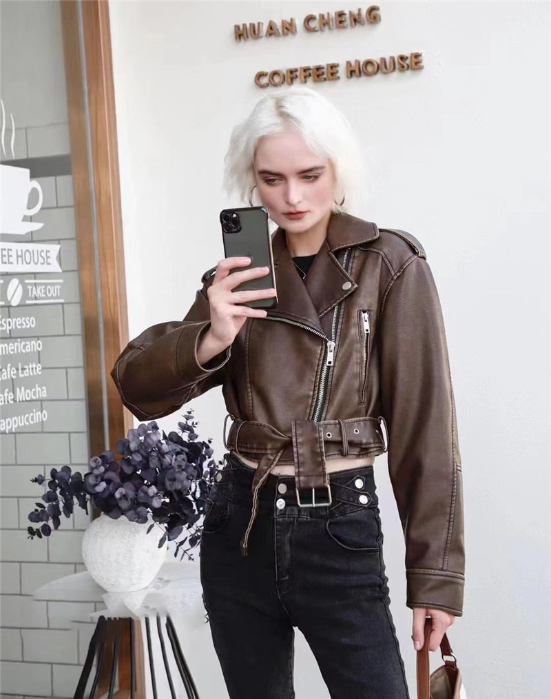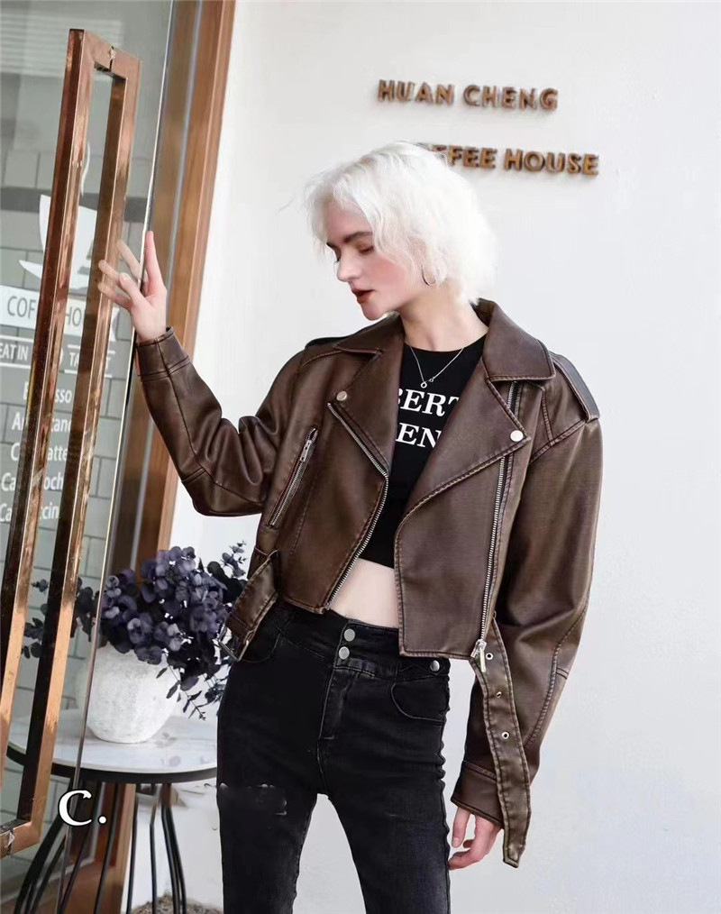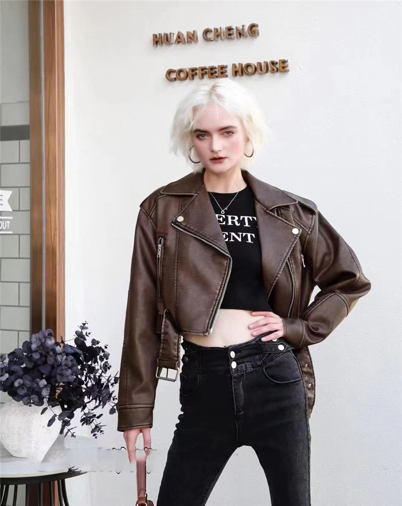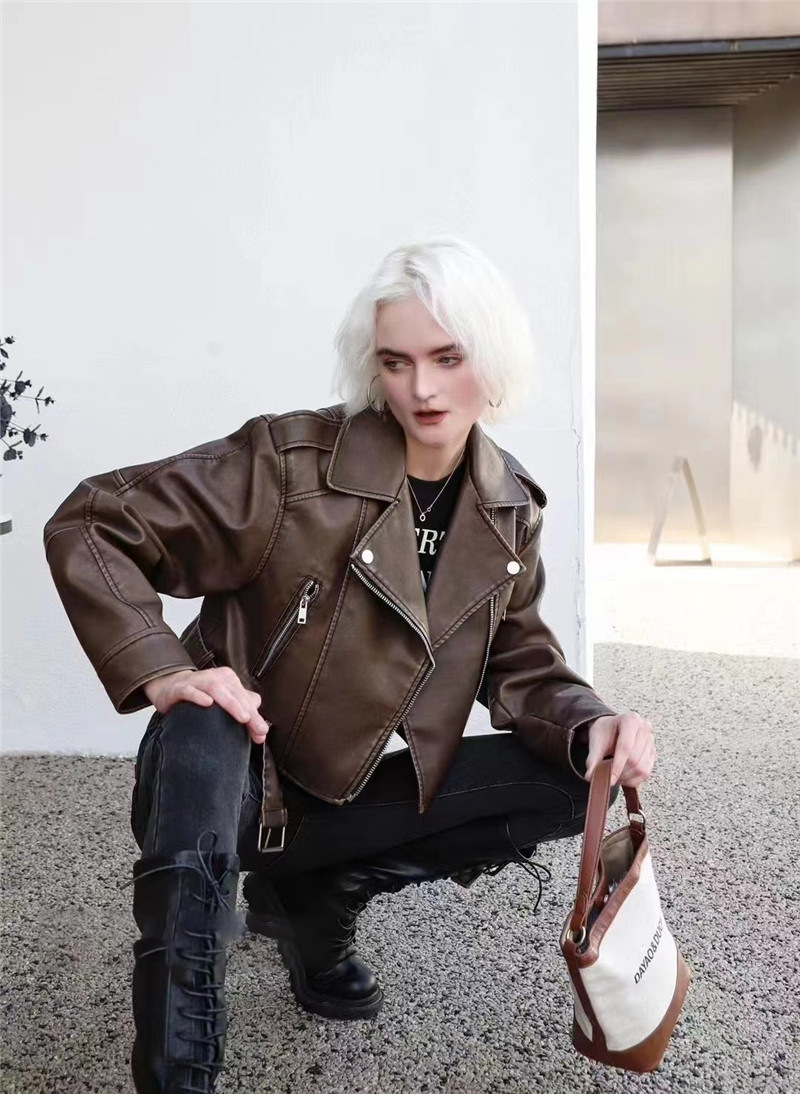 港风复古皮衣外套女短款2023年春秋新款休闲今年流行机车PU皮夹克