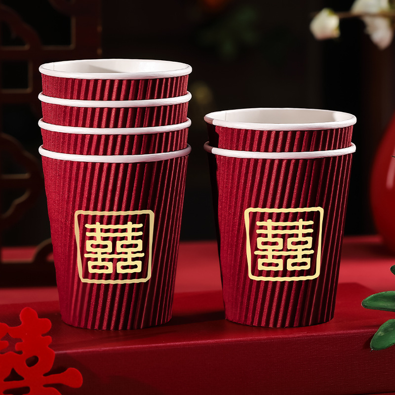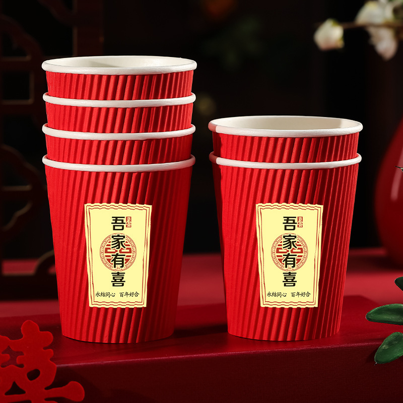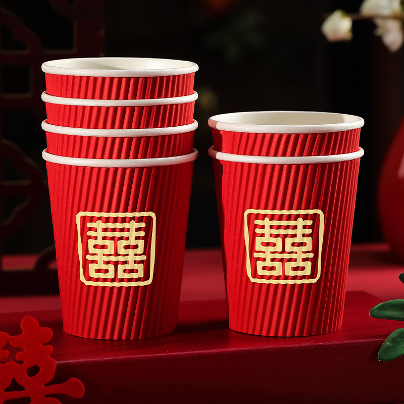 结婚纸杯加厚婚礼结婚一次性喜杯子喜庆喜事红色纸杯结婚用品批发
