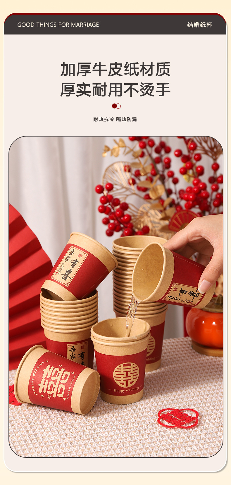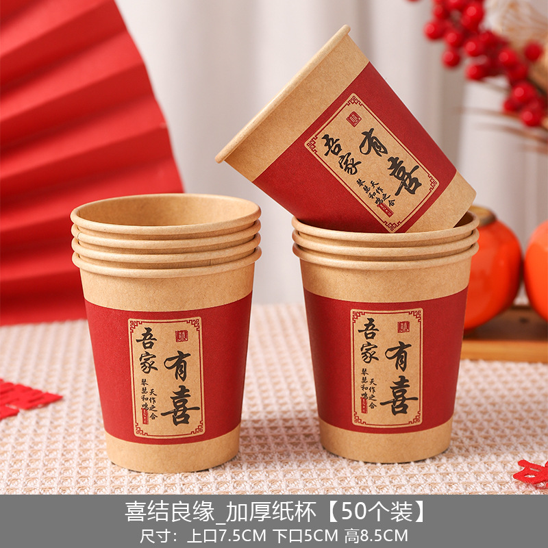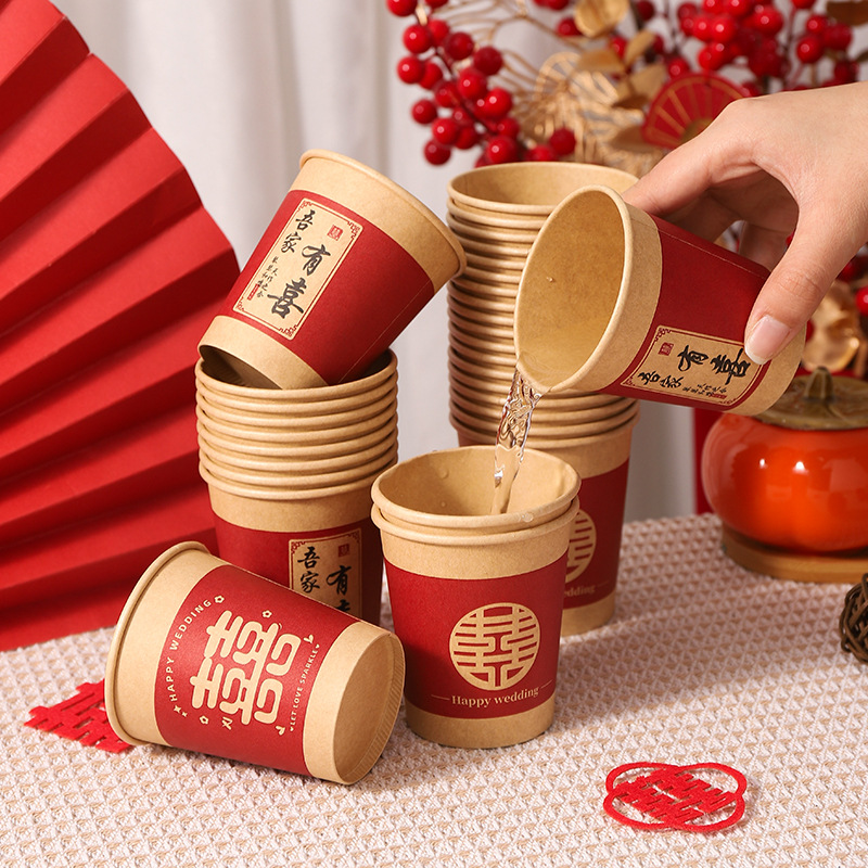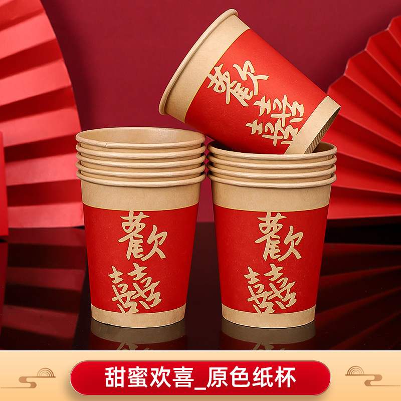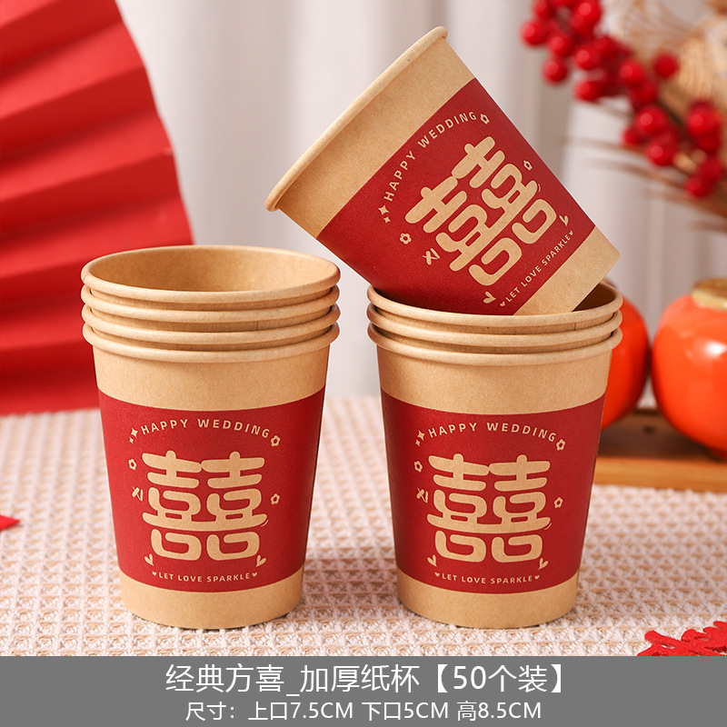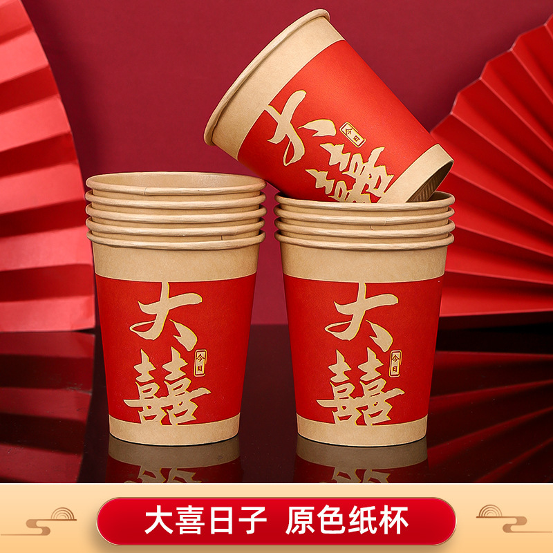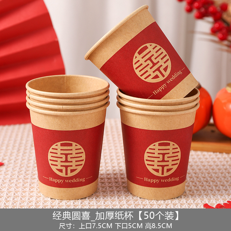 结婚一次性纸杯婚礼喜字杯子加厚婚宴家用喜庆水杯子婚庆用品大全