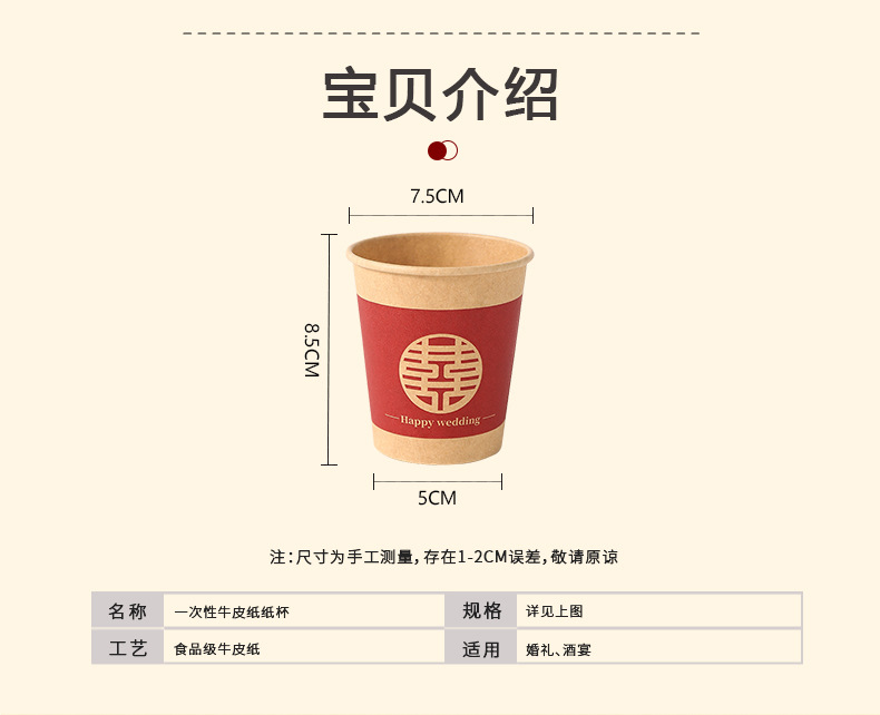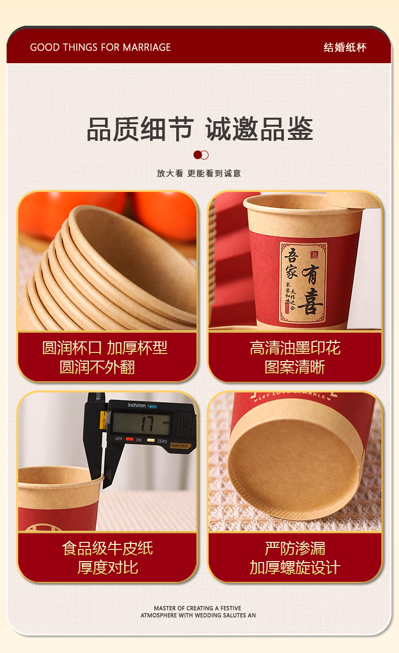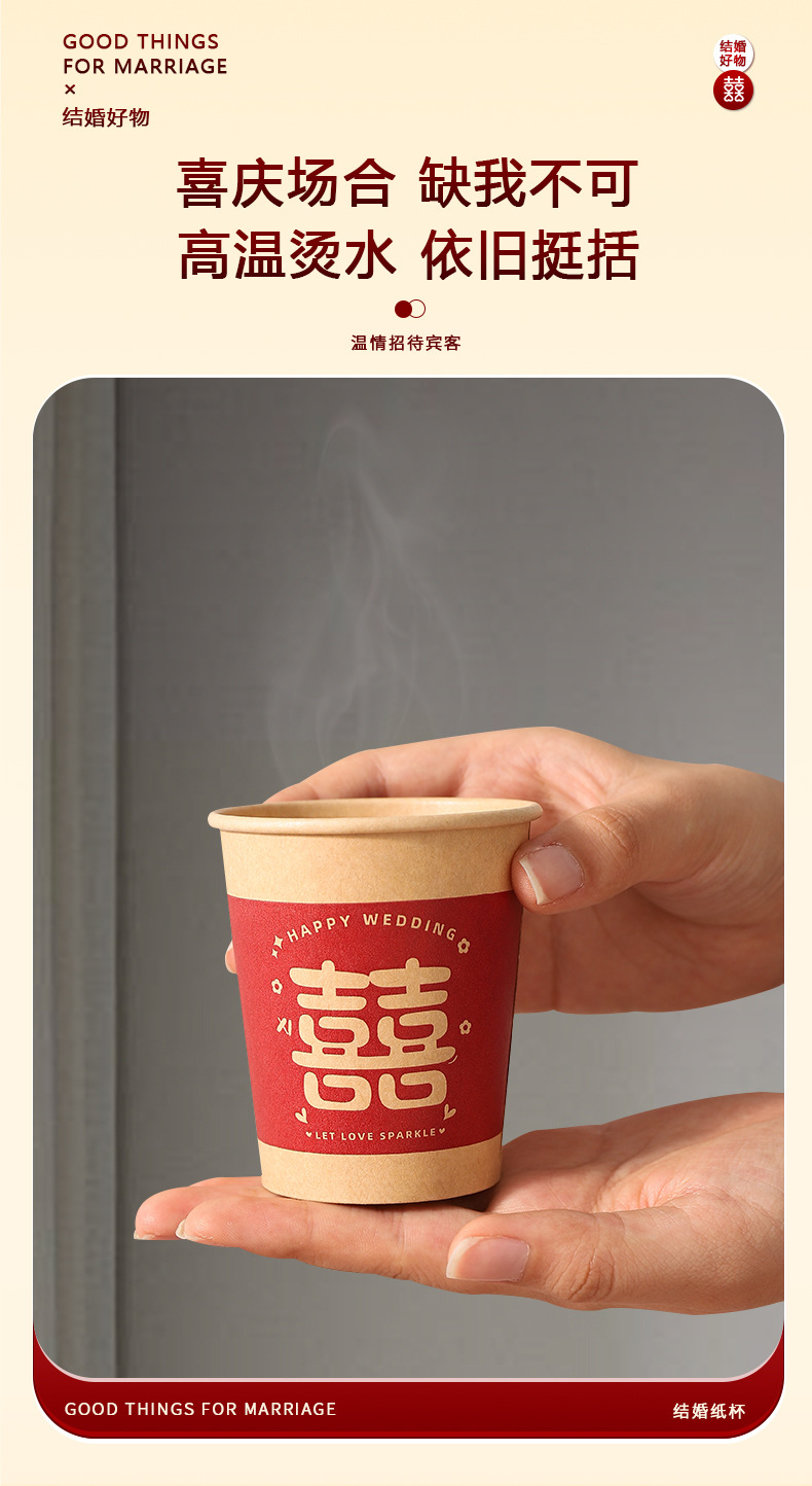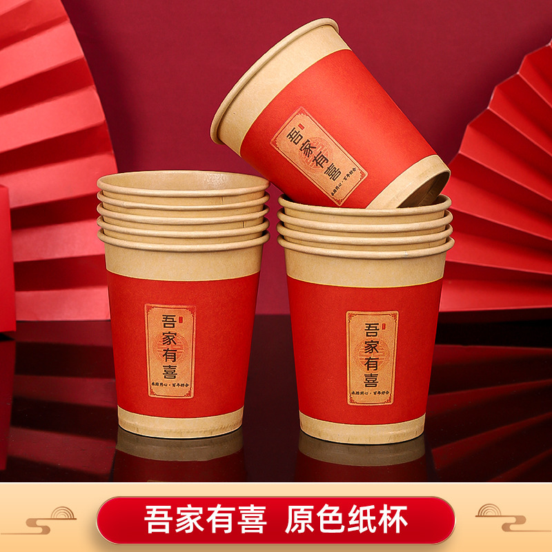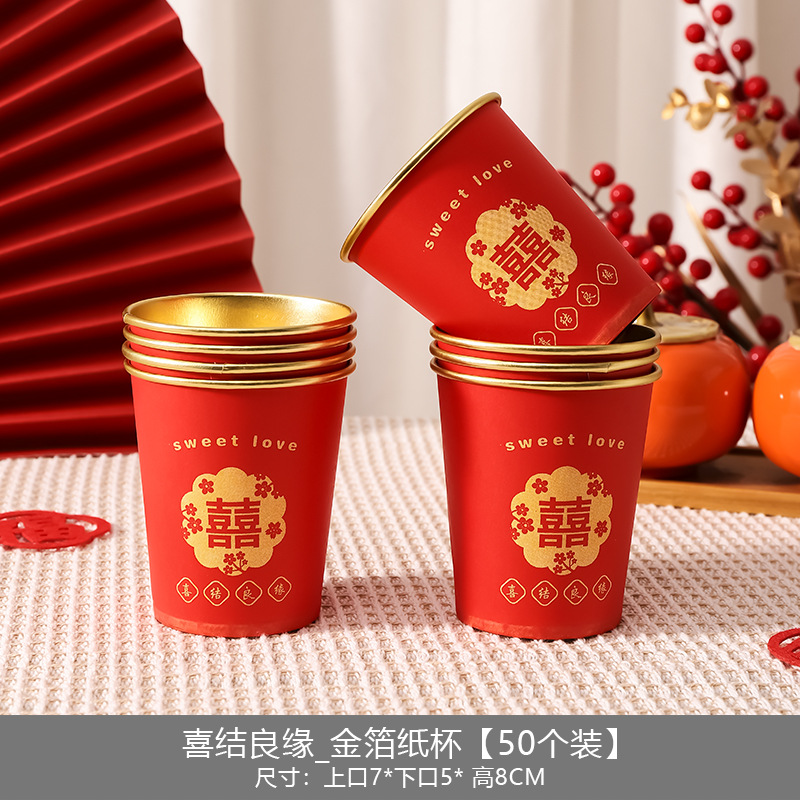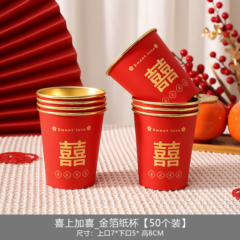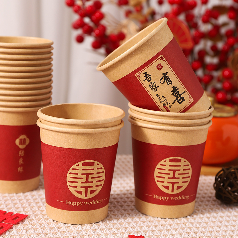 结婚一次性纸杯婚礼喜字杯子加厚婚宴家用喜庆水杯子婚庆用品大全