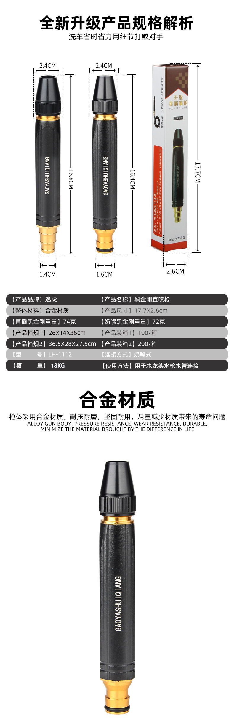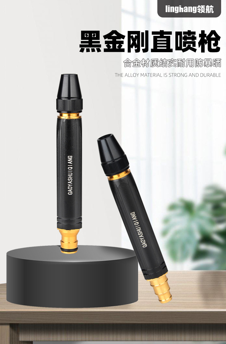 家用园林黑色高压水枪喷头镀铜合金75克黑金刚直喷洗车水枪批发