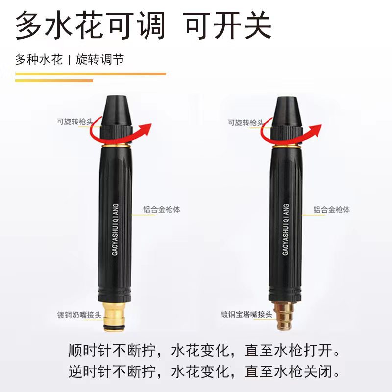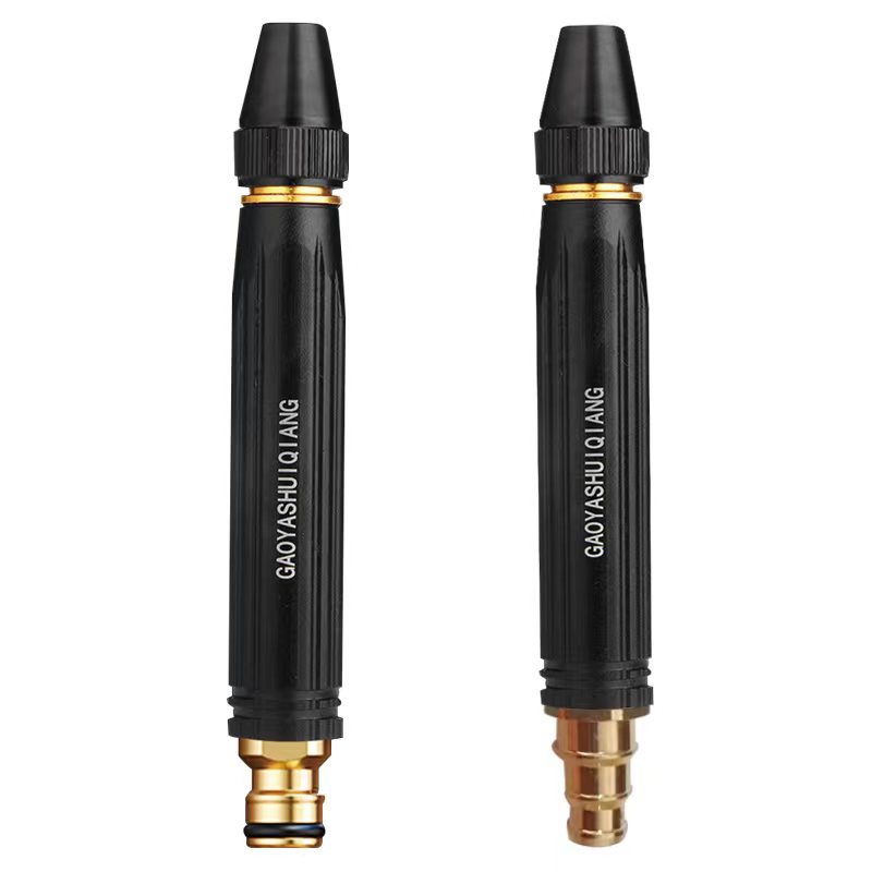 黑金刚直喷洗车水枪家用园林高压塑料水枪喷头镀铜奶嘴型黑色枪头