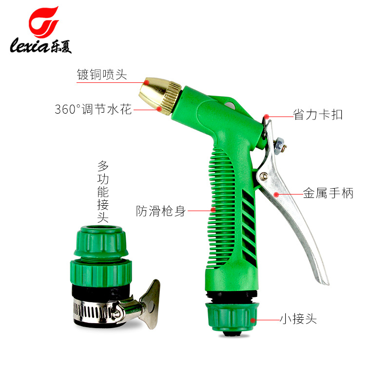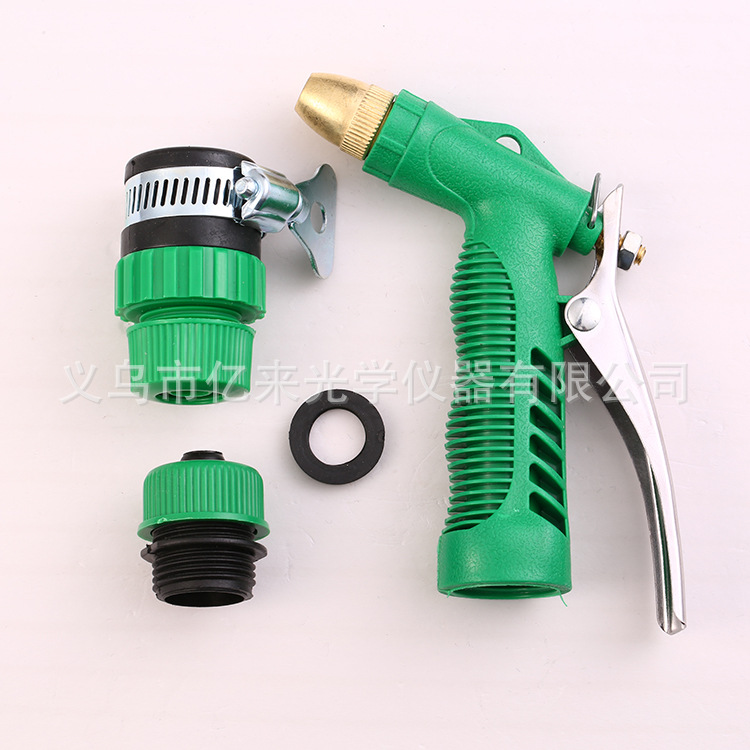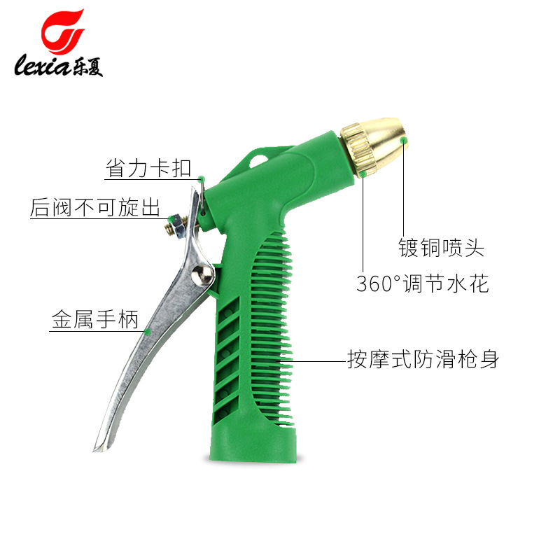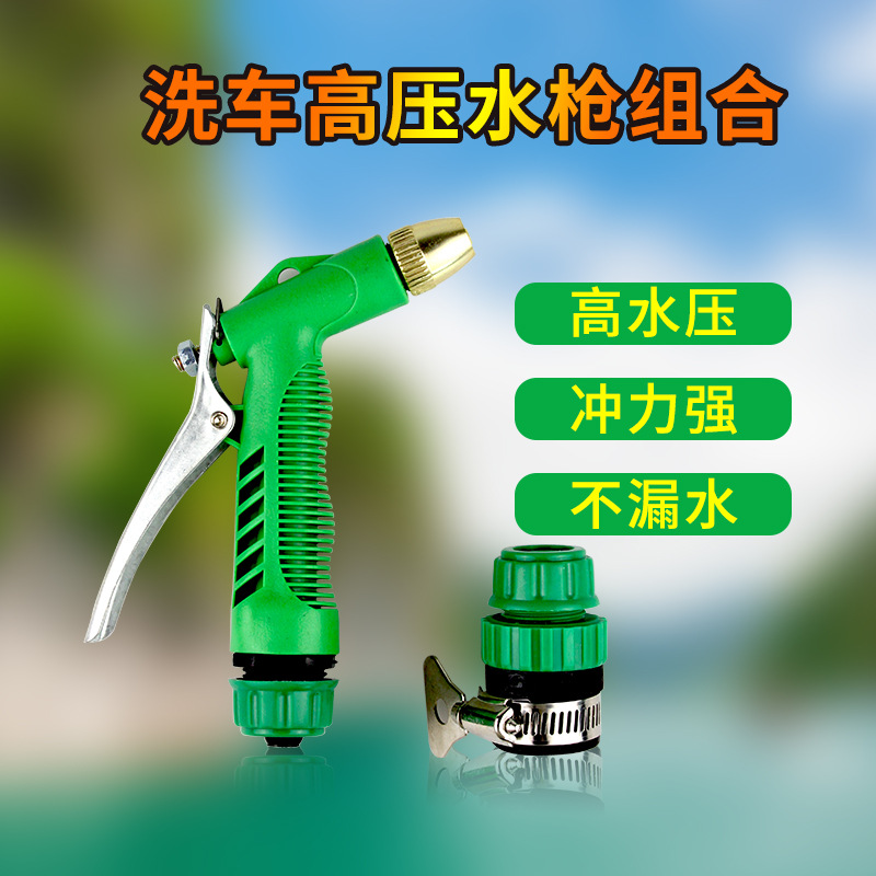 乐夏家用洗车水枪塑料小绿铜头水枪洗车工具高压套装花园水管水枪