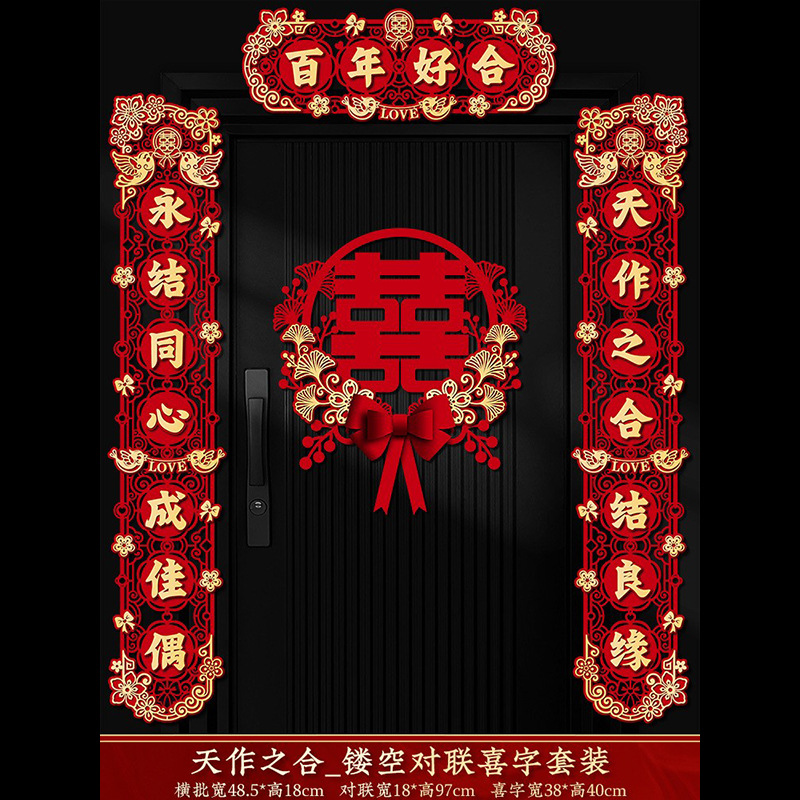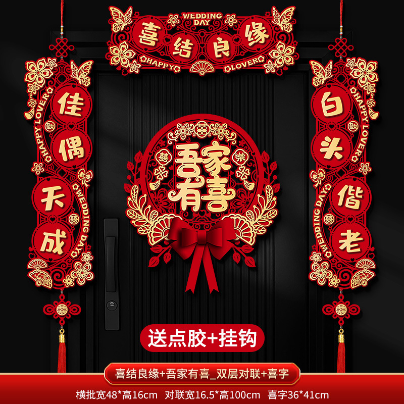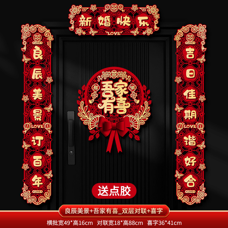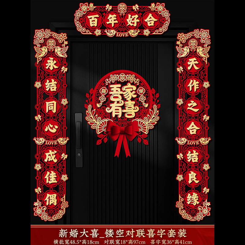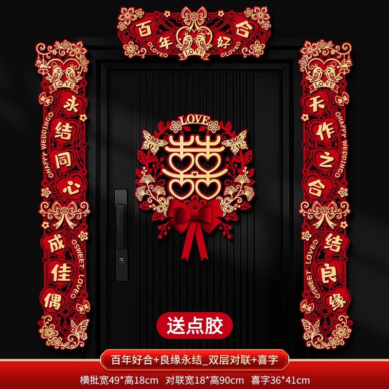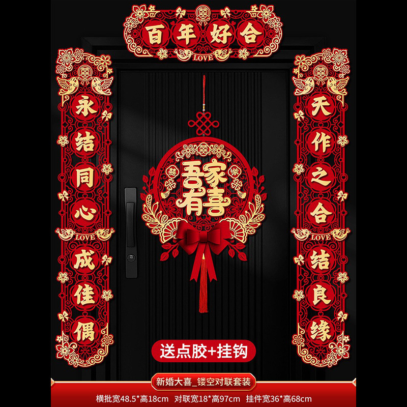 结婚对联喜字专用婚礼男方大门农村女方出嫁房门喜联全套婚房装饰